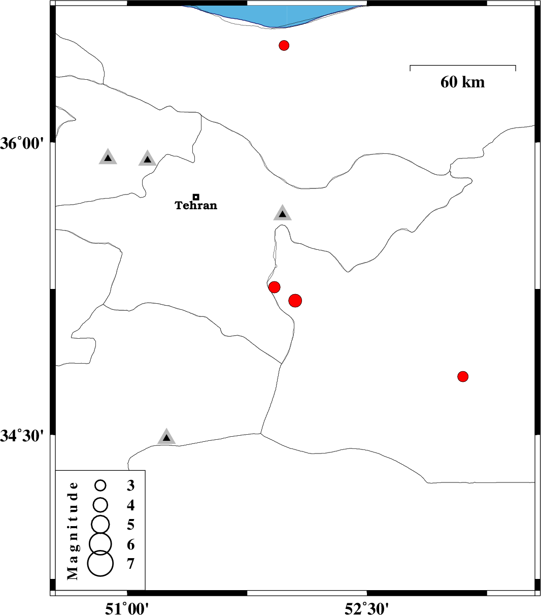 | 2011/12/01 | 07:48:09.8 | 11:18:09.8 | 35.19 | 52.05 | 16 | ML:3.6 | Semnan Province, 26 km West of Garmsar | ||