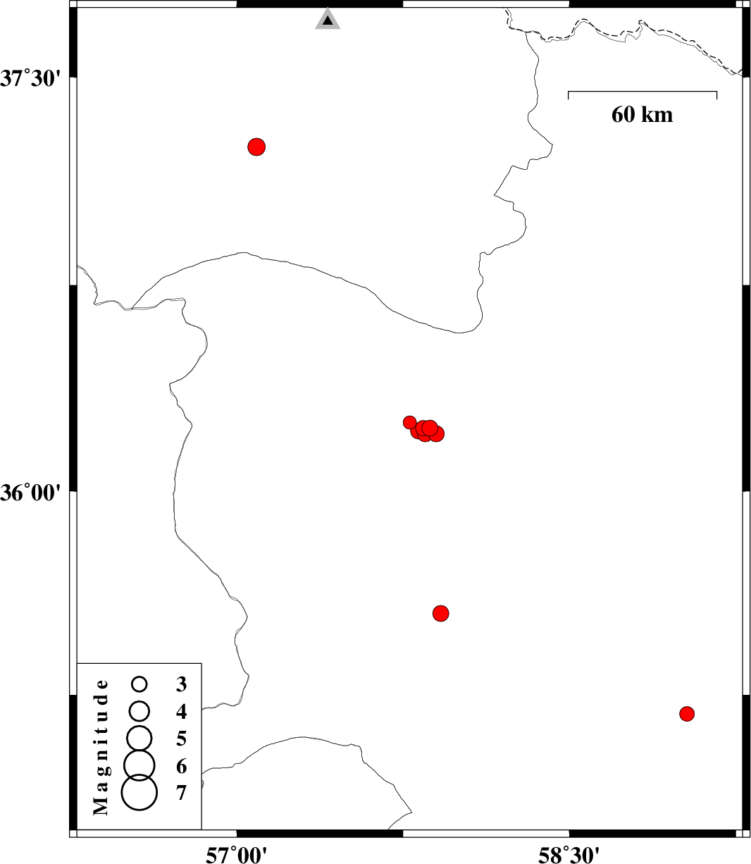 | 2011/12/01 | 14:47:21.4 | 18:17:21.4 | 36.21 | 57.9 | 15 | ML:3.3 | Khorasan(center) Province, 21 km East of Sabzevar | ||