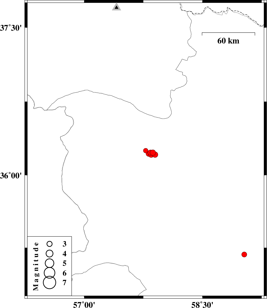 2011/12/01 14:32:26.6 18:02:26.6 36.2557.7815 ML:2.7 Khorasan(center) Province, 10 km East of Sabzevar