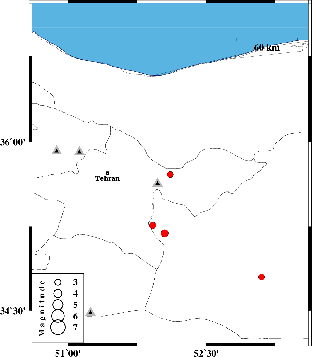 | 2011/12/01 | 07:48:09.8 | 11:18:09.8 | 35.19 | 52.05 | 16 | ML:3.6 | Semnan Province, 26 km West of Garmsar | ||