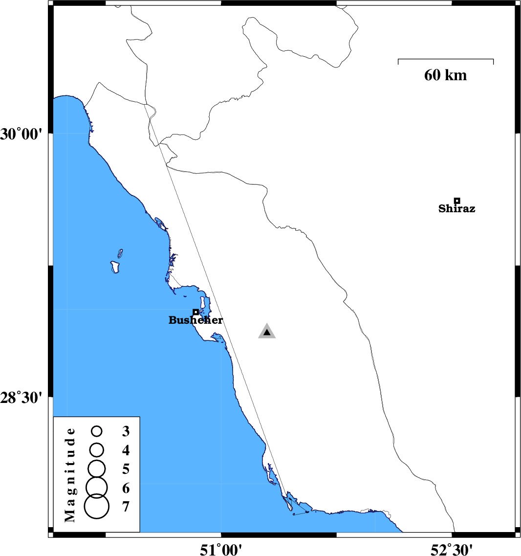 | 2011/12/05 | 06:12:45.0 | 09:42:45.0 | 29.22 | 51.41 | 3 | ML:3.5 | Bushehr Province, 20 km East of Borazjan |