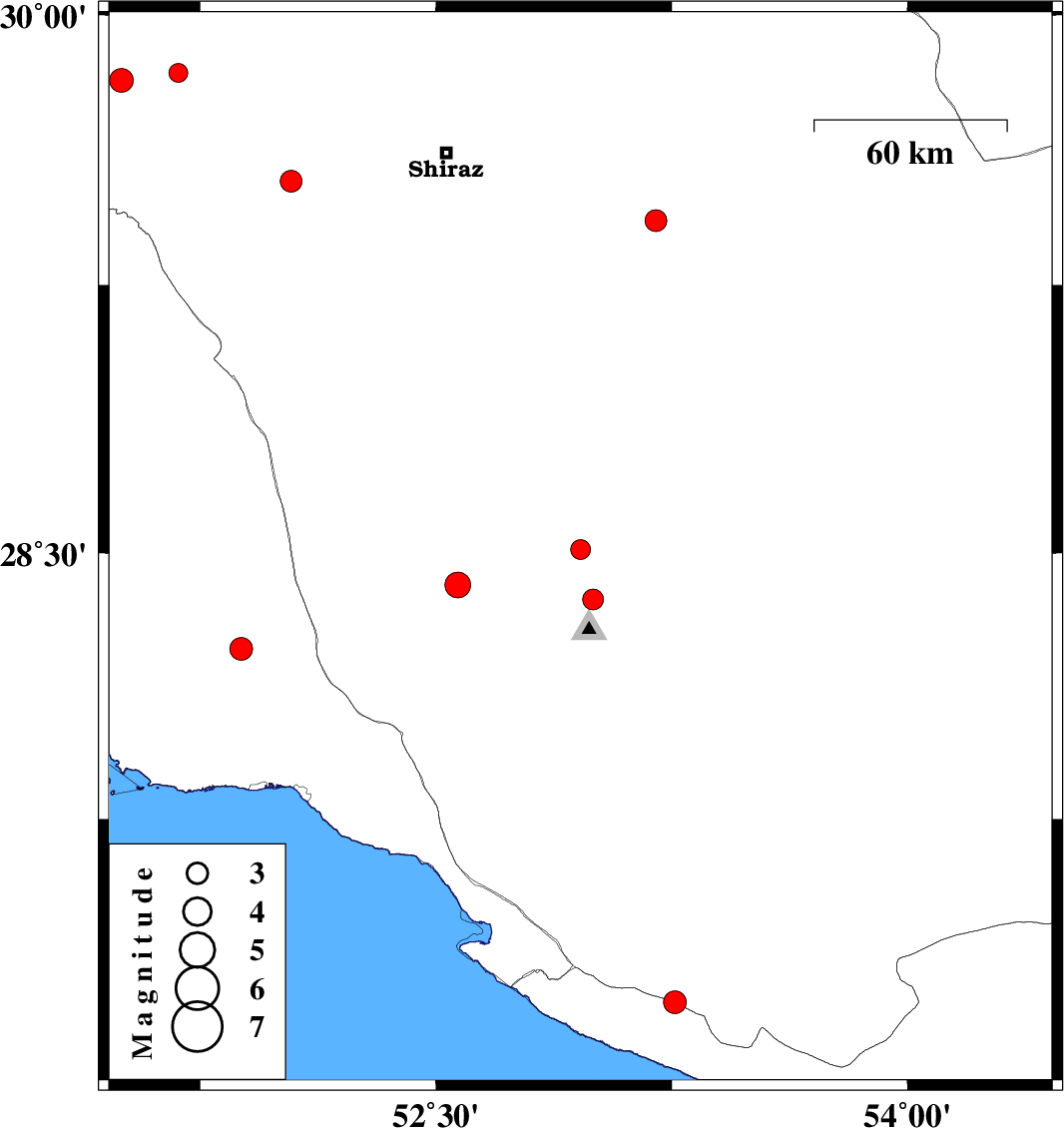 | 2011/11/07 | 15:18:41.2 | 18:48:41.2 | 29.54 | 52.04 | 18 | ML:3.1 | Fars Province, 38 km East of Kazerun |