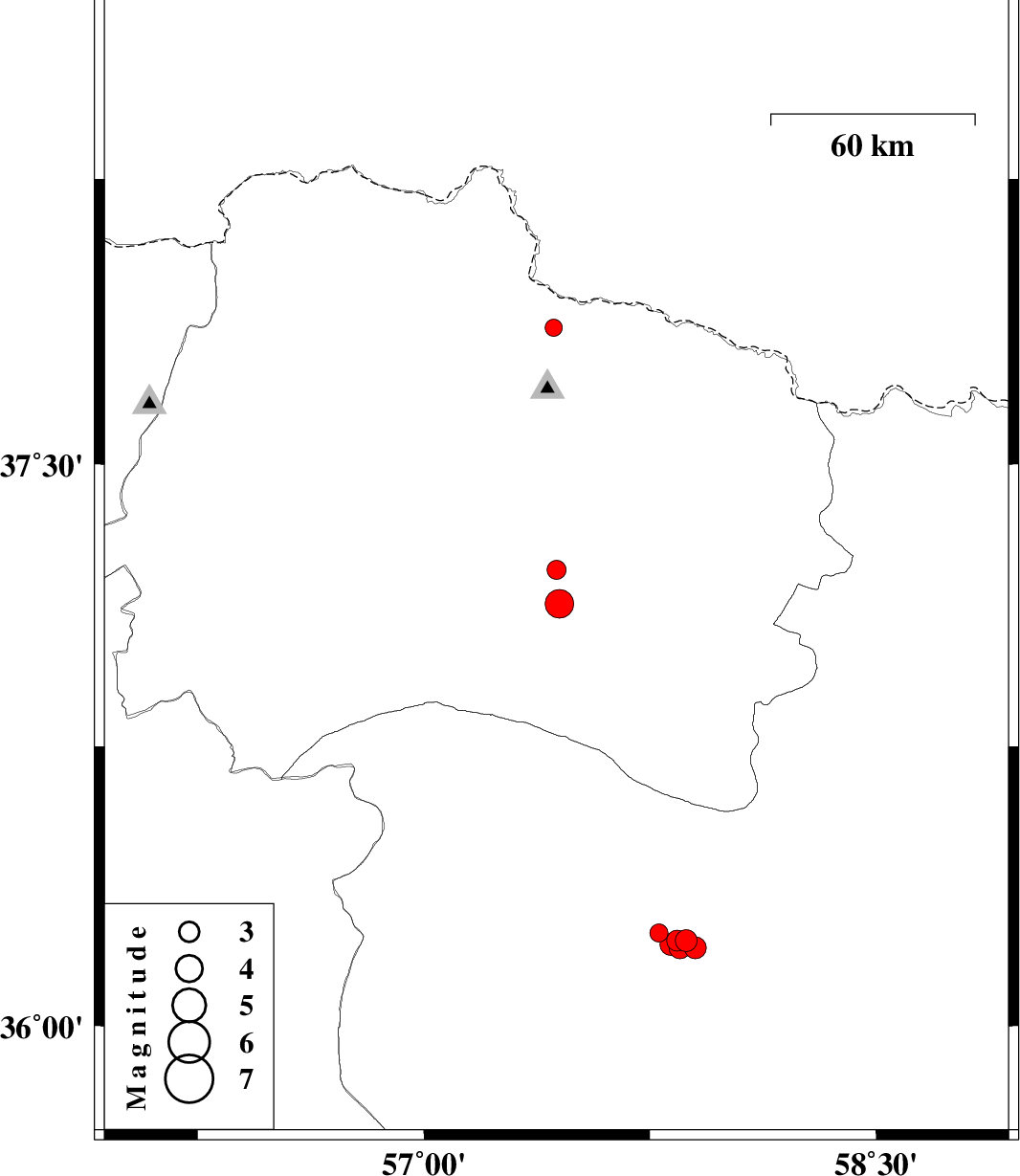 2011/12/01 14:32:26.6 18:02:26.6 36.2557.7815 ML:2.7 Khorasan(center) Province, 10 km East of Sabzevar
