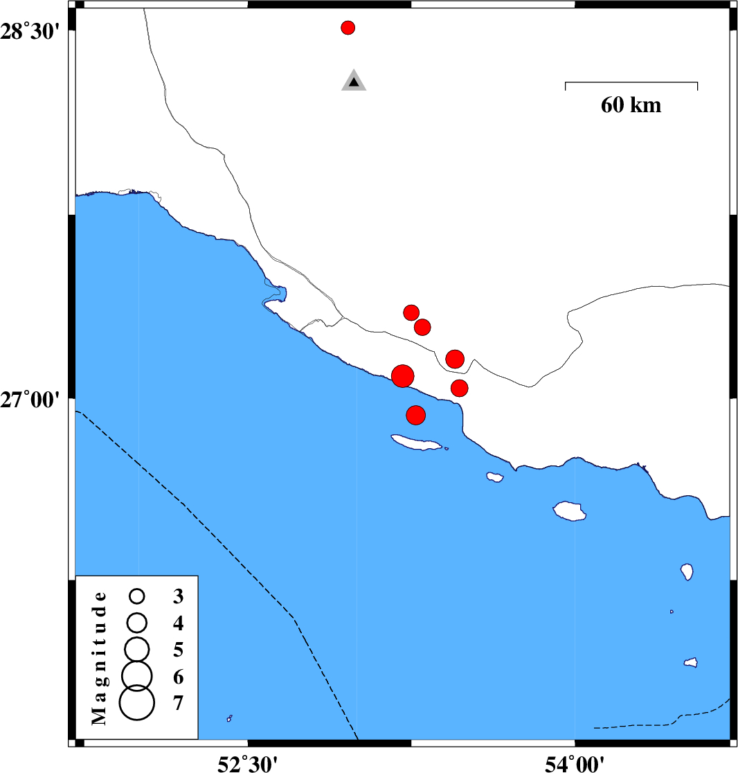 2011/12/09 08:46:32.1 12:16:32.1 26.9353.2716 ML:3.9 Persian Gulf, 46 km South-East of Lamerd