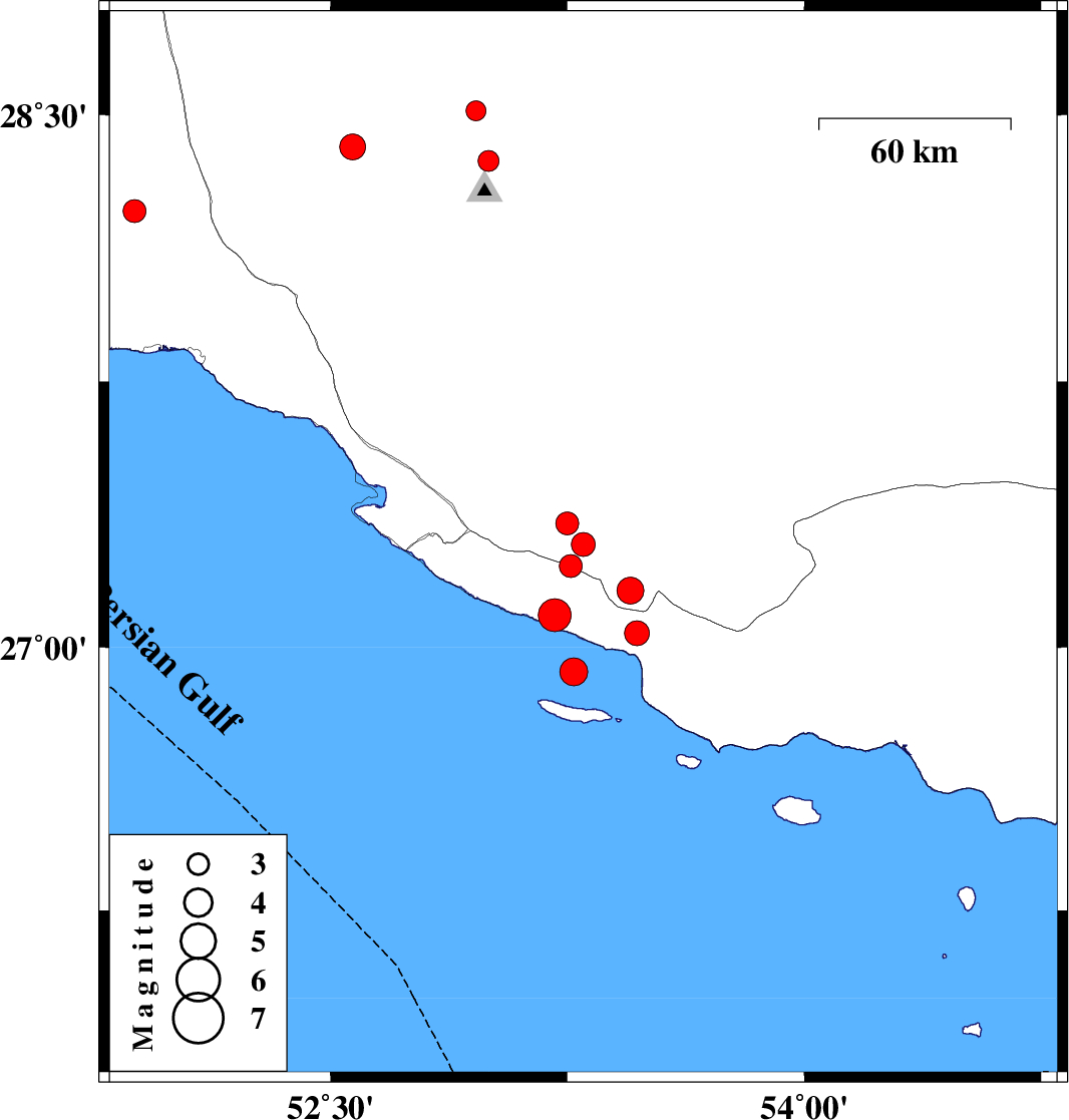 Bushehr Province, 48 km North-West of Bandar-e kangan | |