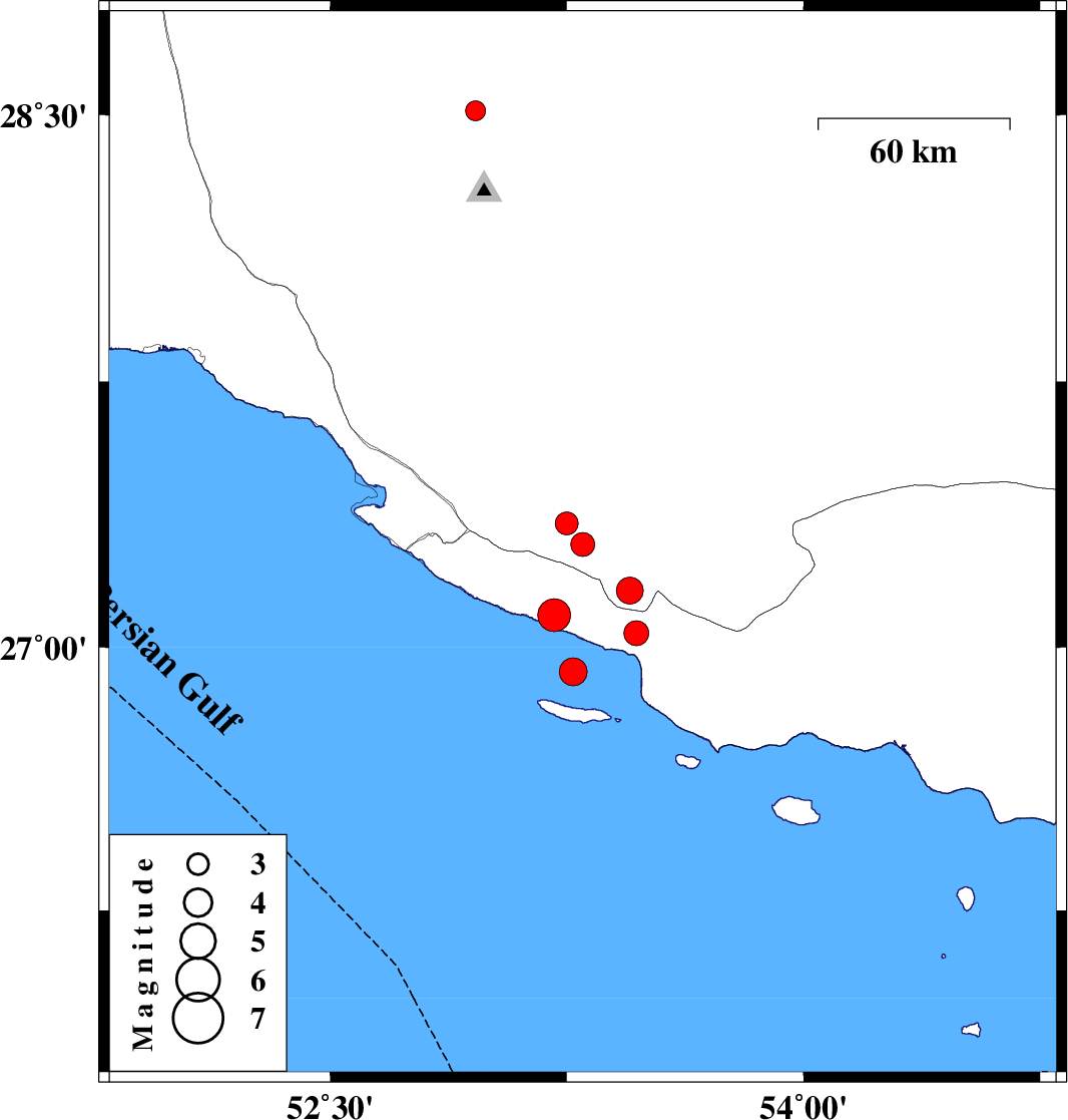 2011/12/09 08:46:32.1 12:16:32.1 26.9353.2716 ML:3.9 Persian Gulf, 46 km South-East of Lamerd