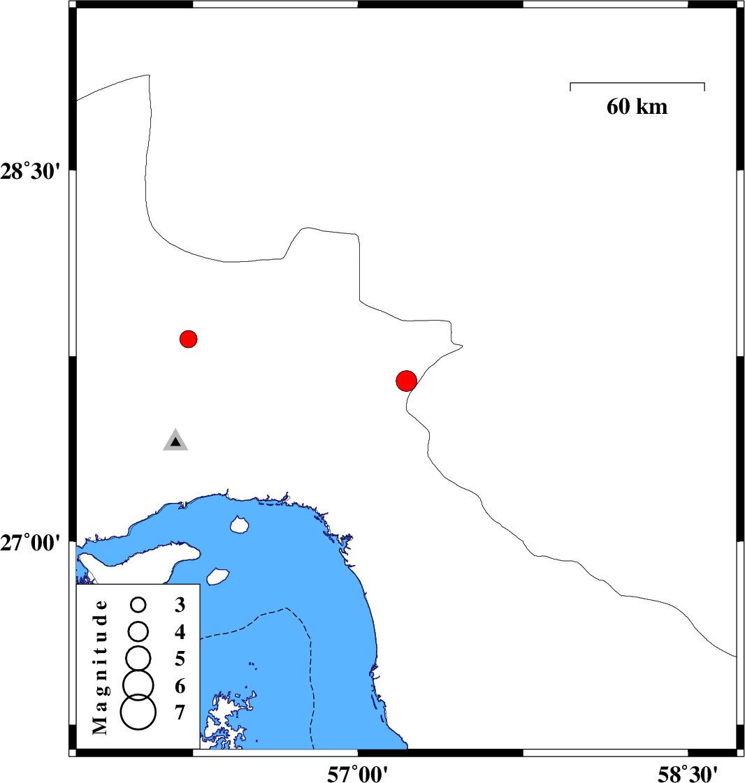 | 2011/12/14 | 15:56:46.7 | 19:26:46.7 | 27.82 | 56.23 | 14 | ML:3.5 | Hormozgan Province, 71 km North of Bandar-e abbas |