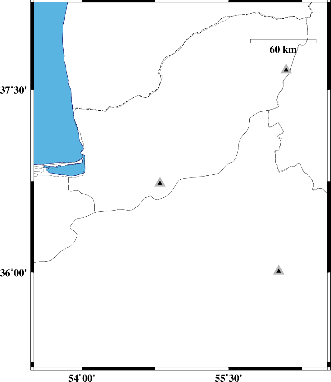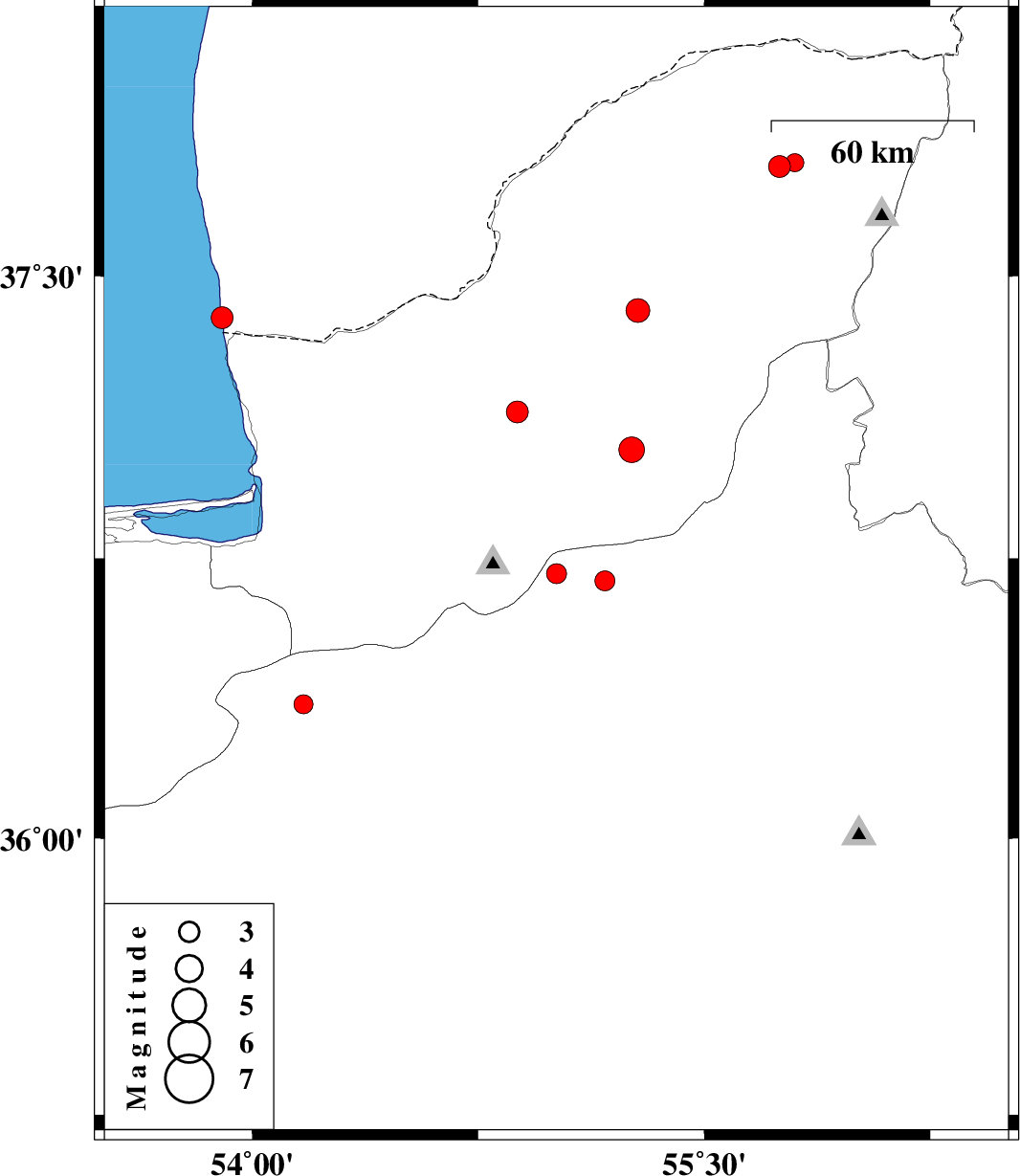 | 2011/12/01 | 03:56:42.1 | 07:26:42.1 | 37.8 | 55.8 | 6 | ML:2.7 | Golestan Province, 54 km North-East of Kalaleh | ||