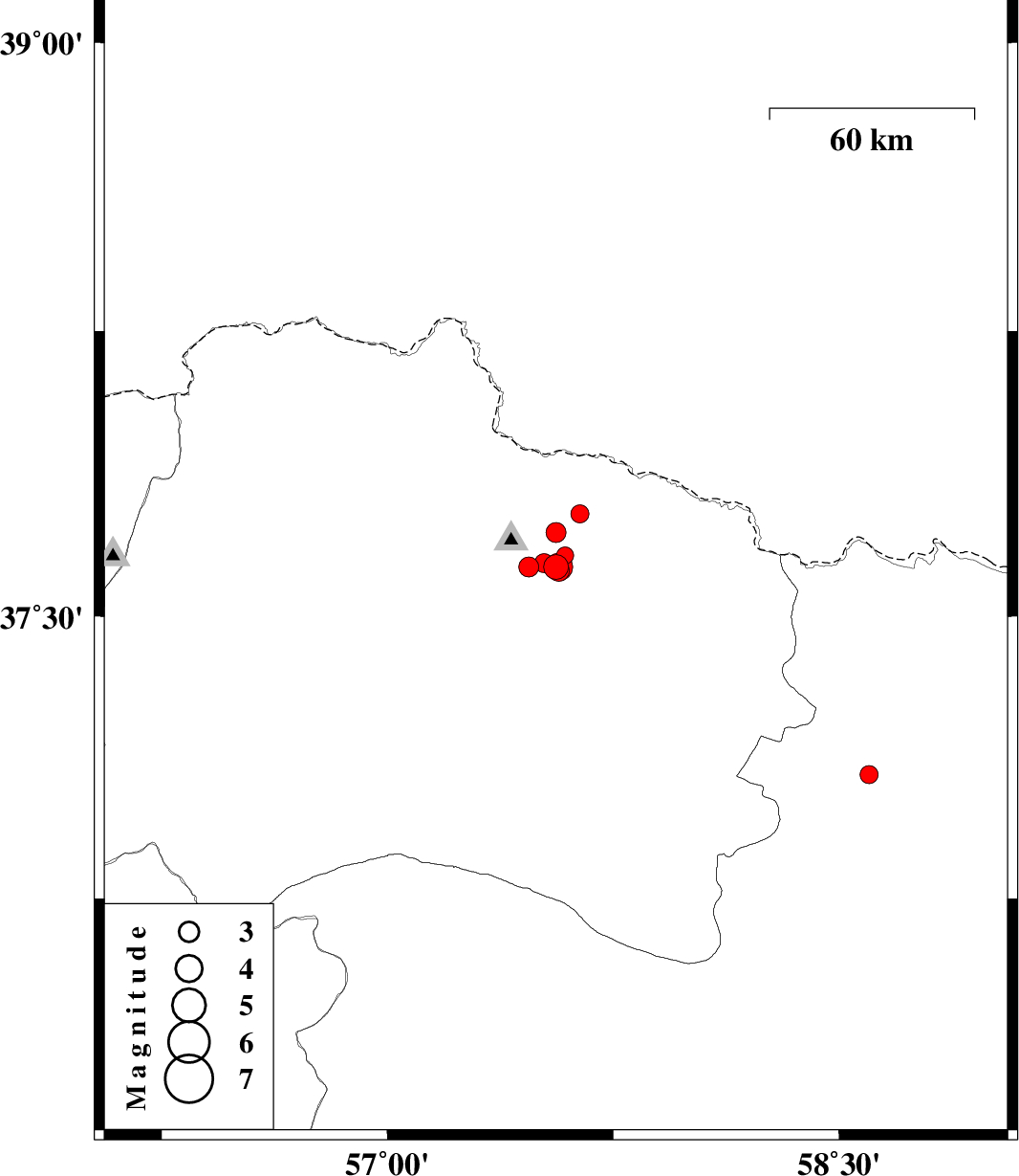 2011/12/26 04:12:00.1 07:42:00.1 37.7257.5617 ML:3 Khorasan(north) Province, 34 km North-East of Bojnurd