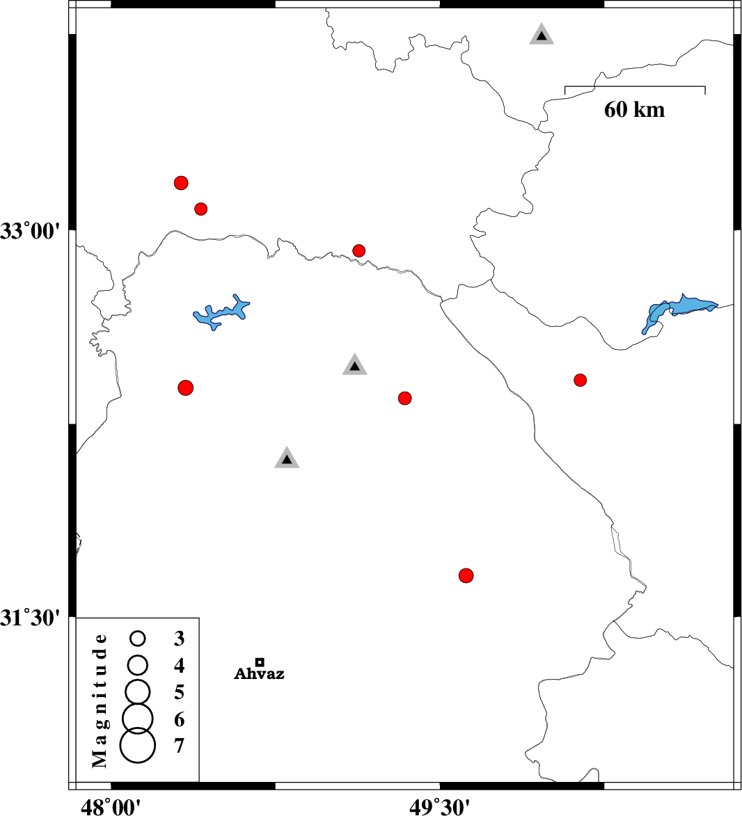 | 2011/12/17 | 16:59:31.0 | 20:29:31.0 | 32.39 | 48.34 | 39 | ML:3.1 | Khoozestan Province, 6 km Dezful | ||