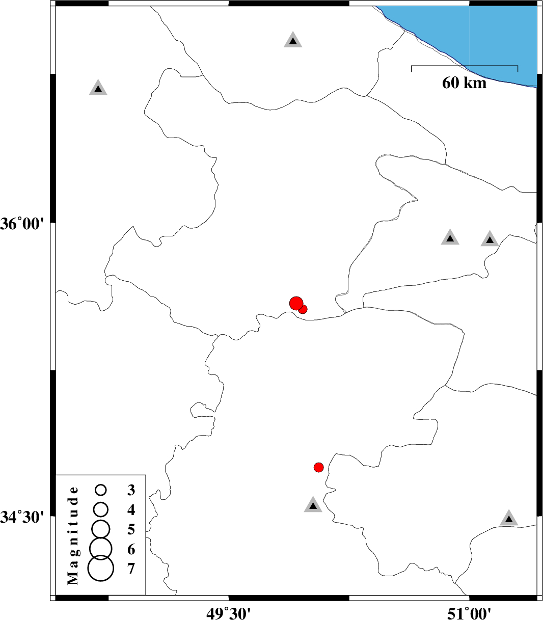 | 2011/12/28 | 11:57:28.9 | 15:27:28.9 | 35.56 | 49.96 | 6 | ML:2.5 | Ghazvin Province, 26 km South-West of Buinzara | ||