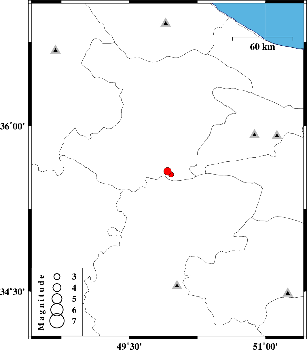 | 2011/12/28 | 11:57:28.9 | 15:27:28.9 | 35.56 | 49.96 | 6 | ML:2.5 | Ghazvin Province, 26 km South-West of Buinzara |