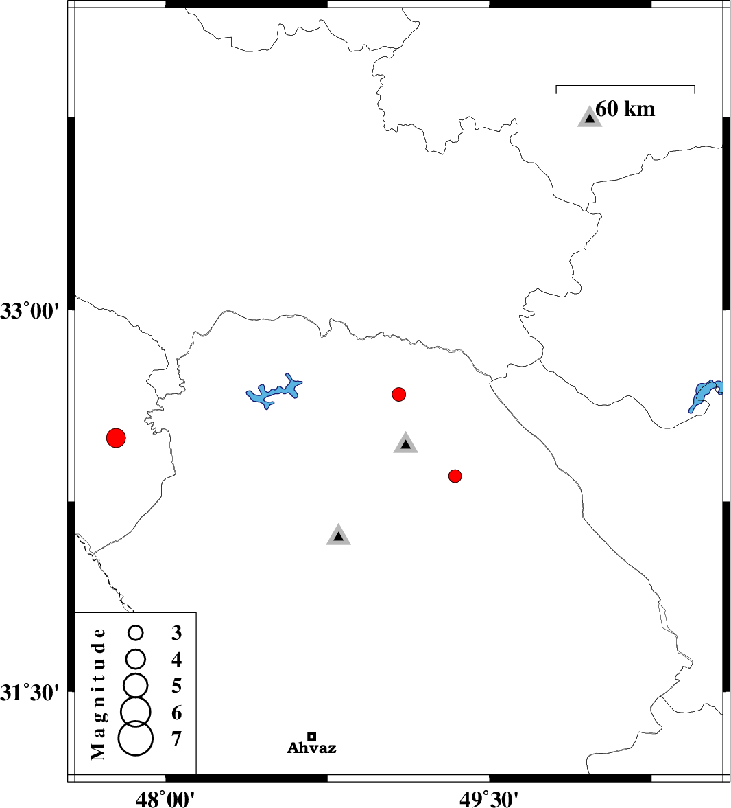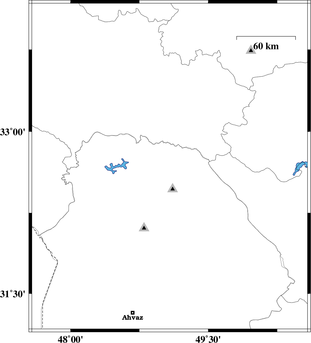 | 2011/12/26 | 04:01:20.2 | 07:31:20.2 | 32.35 | 49.34 | 32 | ML:2.7 | Khoozestan Province, 22 km East of Lali | ||