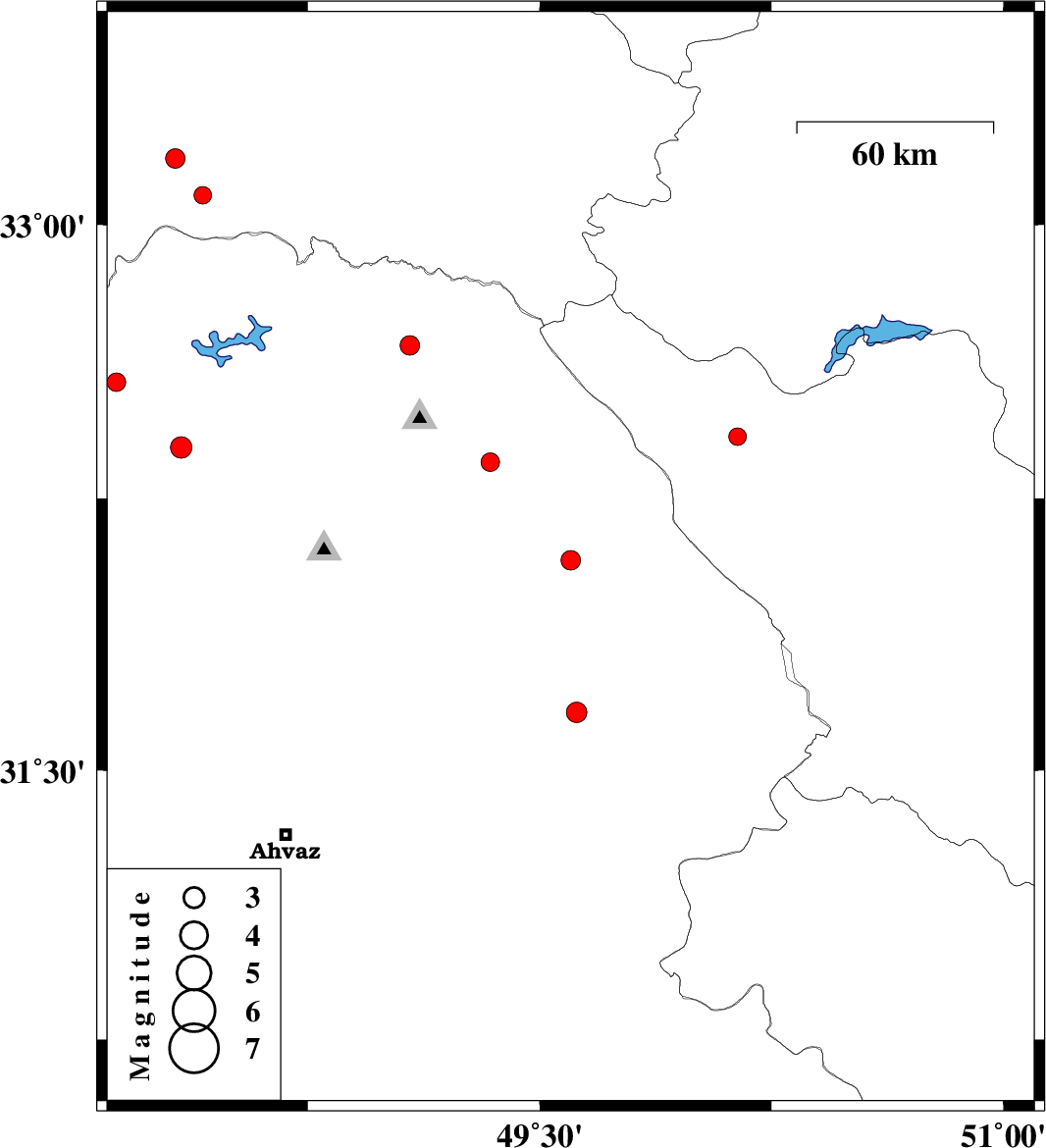 | 2011/12/30 | 07:51:54.0 | 11:21:54.0 | 32.67 | 49.08 | 15 | ML:2.8 | Khoozestan Province, 31 km North of Lali | ||