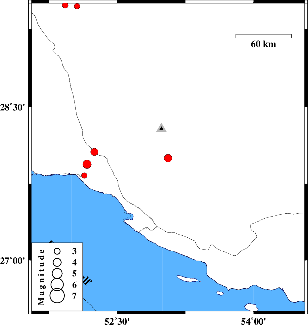 | 2012/01/05 | 21:42:01.2 | 01:12:01.2 | 27.83 | 52.14 | 40 | ML:2.8 | Bushehr Province, 7 km Bandar-e kangan | ||