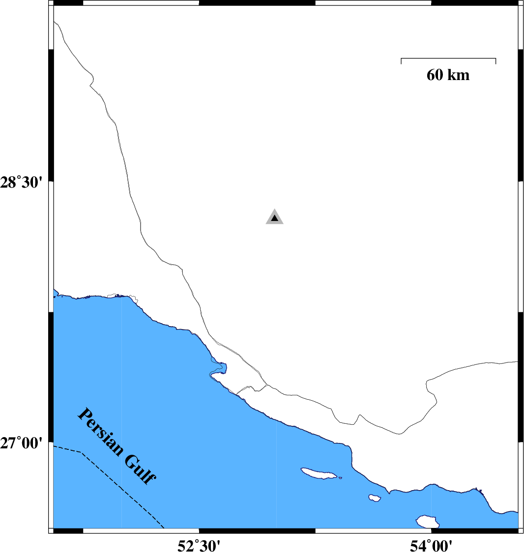| 2012/01/05 | 17:49:11.2 | 21:19:11.2 | 28.06 | 52.25 | 42 | ML:3.6 | Bushehr Province, 26 km North of Jam | ||