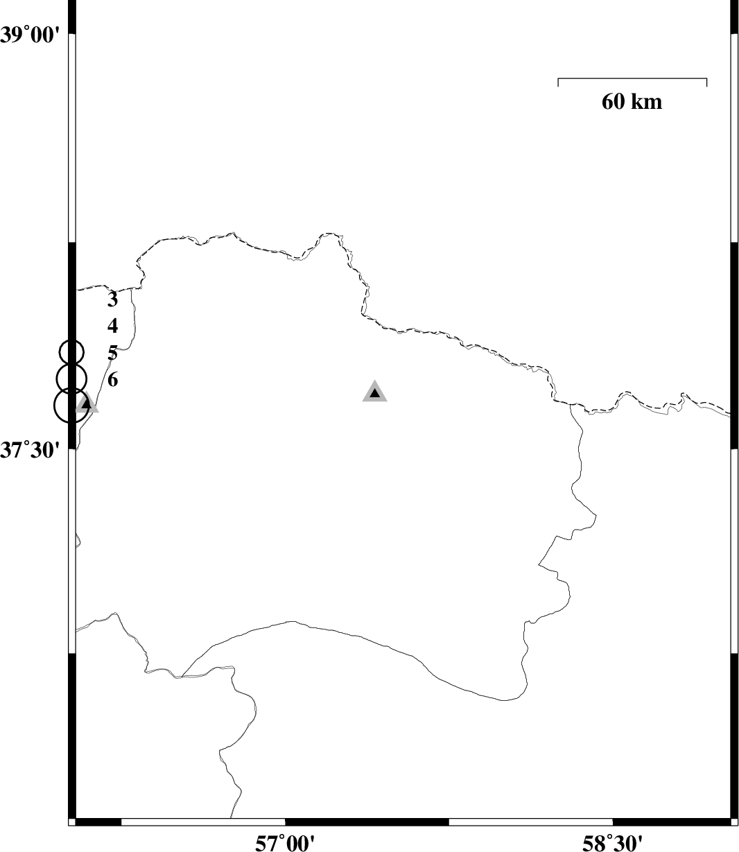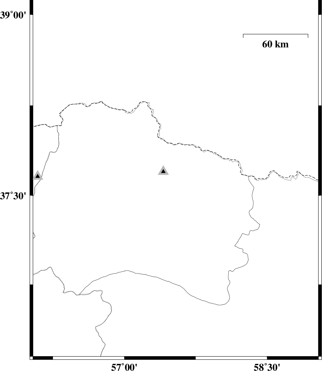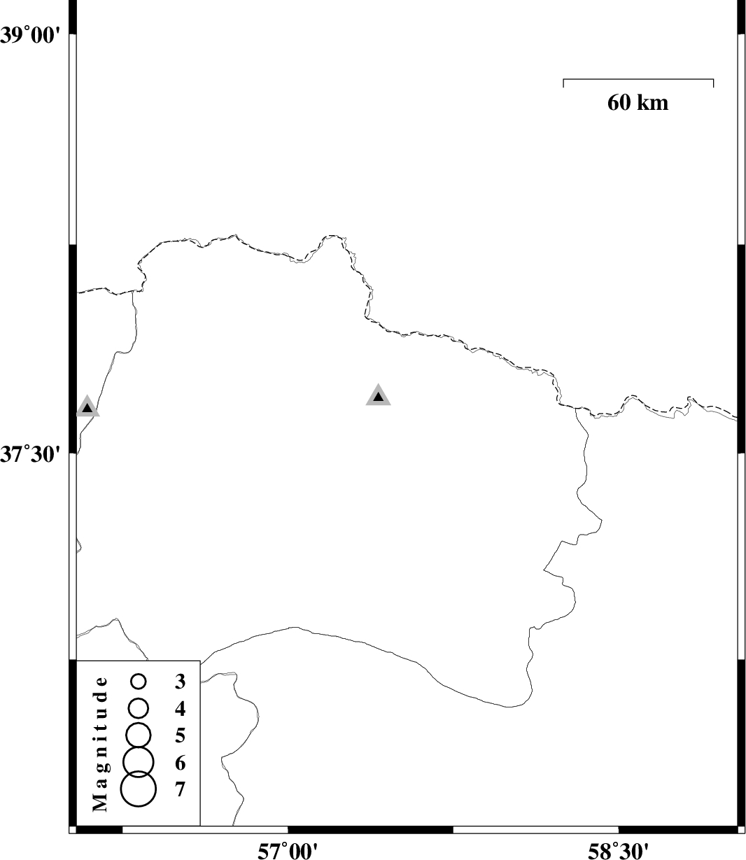 | 2012/01/08 | 08:54:42.3 | 12:24:42.3 | 37.64 | 57.54 | 14 | ML:2.5 | Khorasan(north) Province, 26 km North-East of Bojnurd |