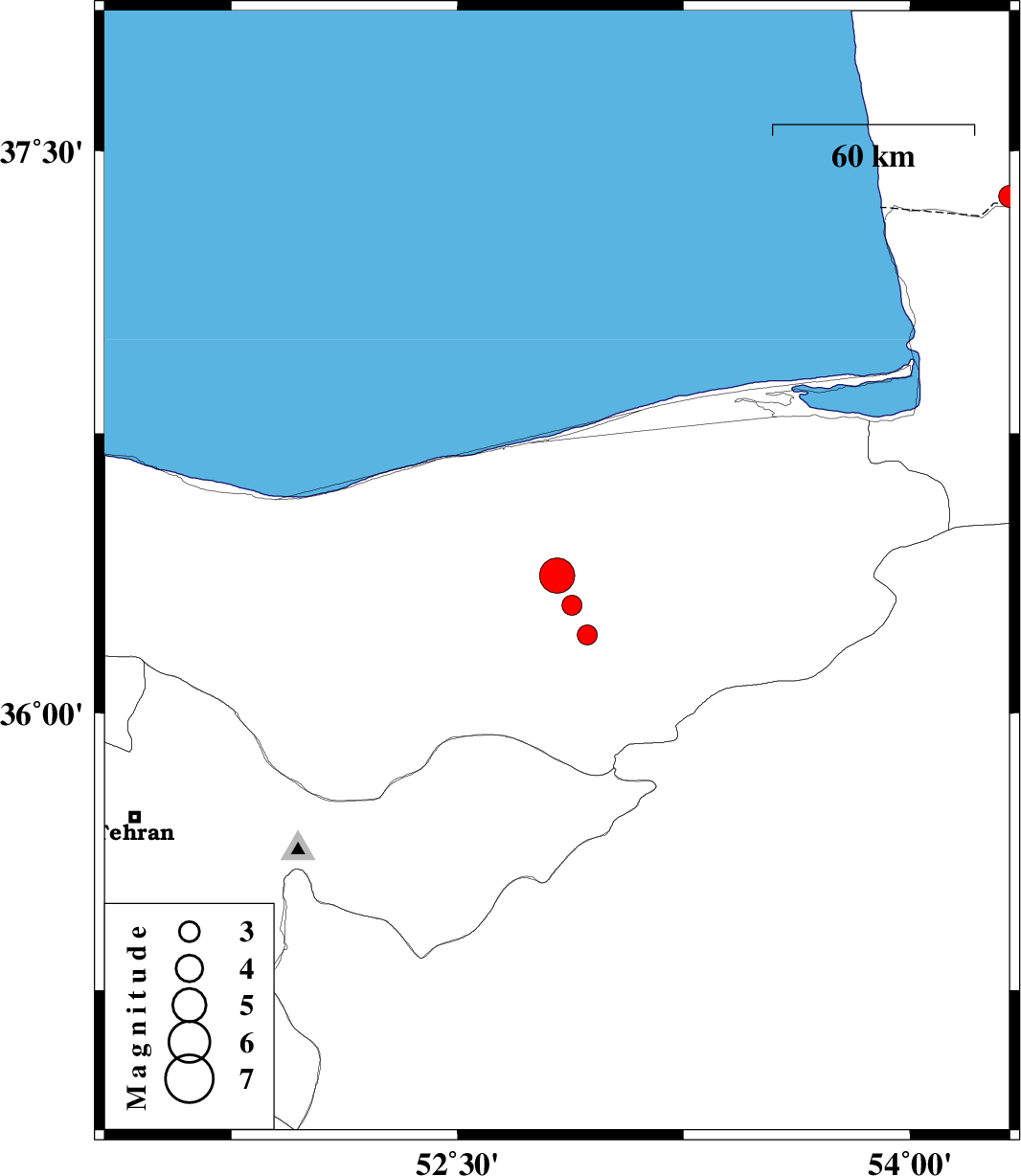 | 2012/01/11 | 19:03:20.3 | 22:33:20.3 | 36.21 | 52.93 | 18 | ML:2.9 | Mazandaran Province, 15 km West of Pol-E-Sefid | ||