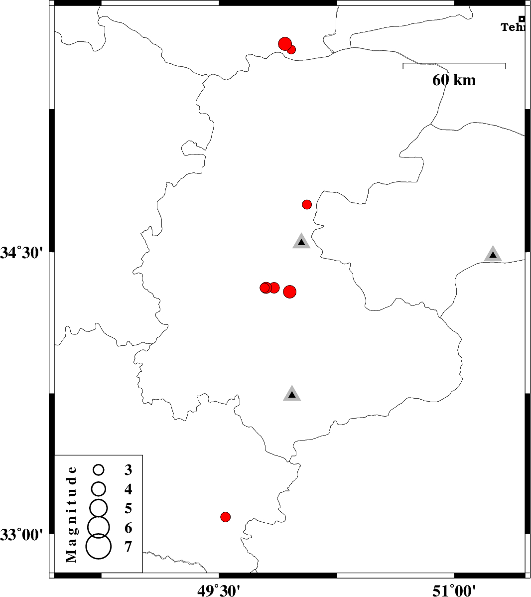 | 2012/01/15 | 05:59:20.1 | 09:29:20.1 | 34.31 | 49.79 | 14 | ML:2.7 | Markazi Province, 27 km North-East of Arak | ||