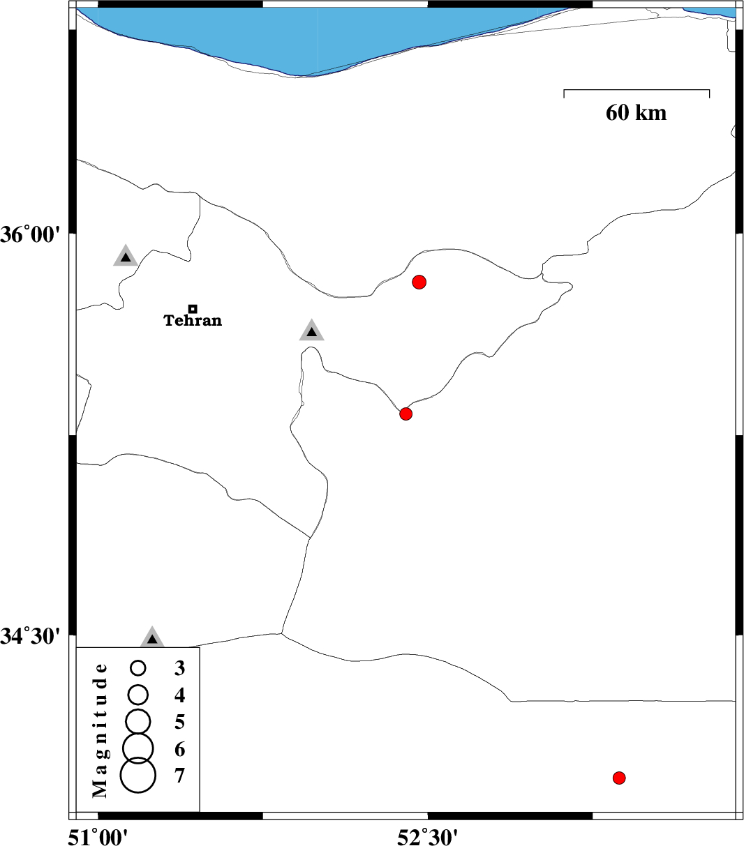 | 2012/01/19 | 07:00:48.6 | 10:30:48.6 | 35.33 | 52.4 | 28 | ML:2.6 | Semnan Province, 14 km North of Garmsar | ||