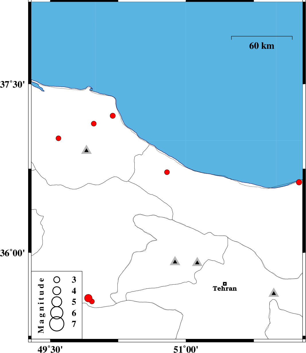 | 2012/01/17 | 06:19:41.3 | 09:49:41.3 | 37.22 | 50.19 | 14 | ML:2.7 | Gilan Province, 4 km Langarud | ||