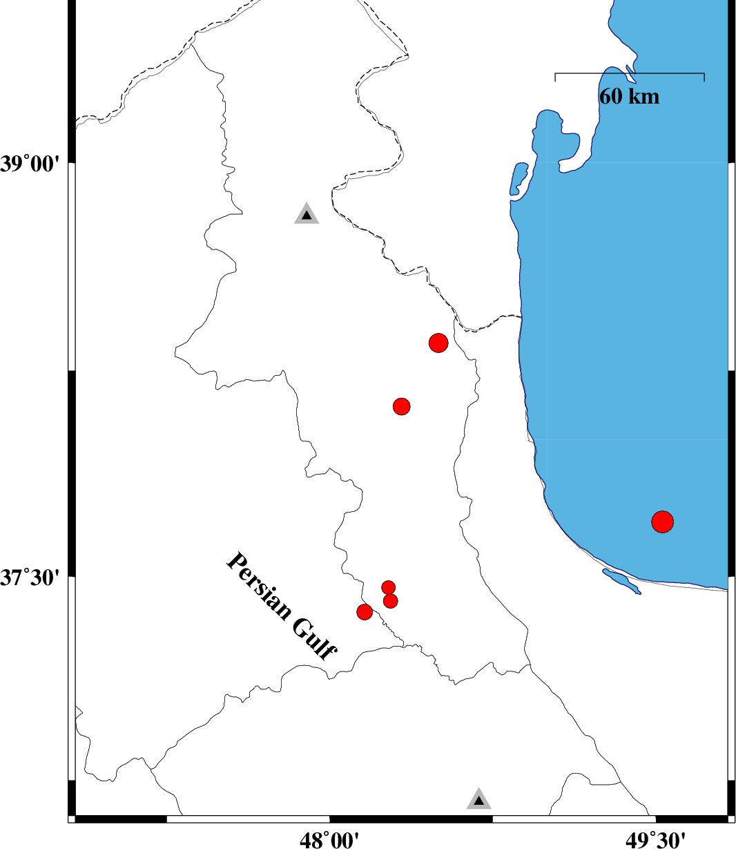 | 2012/02/04 | 06:19:33.3 | 09:49:33.3 | 38.35 | 48.5 | 32 | ML:3.9 | Ardebil Province, 11 km Namin | ||
