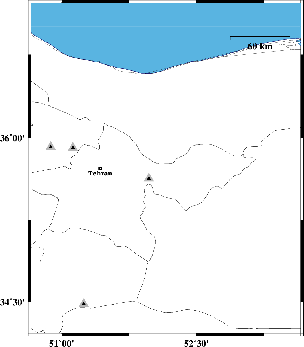 | 2012/02/10 | 08:59:40.0 | 12:29:40.0 | 35.59 | 52.42 | 14 | ML:4.6 | Tehran Province, 42 km North of Garmsar | download | |