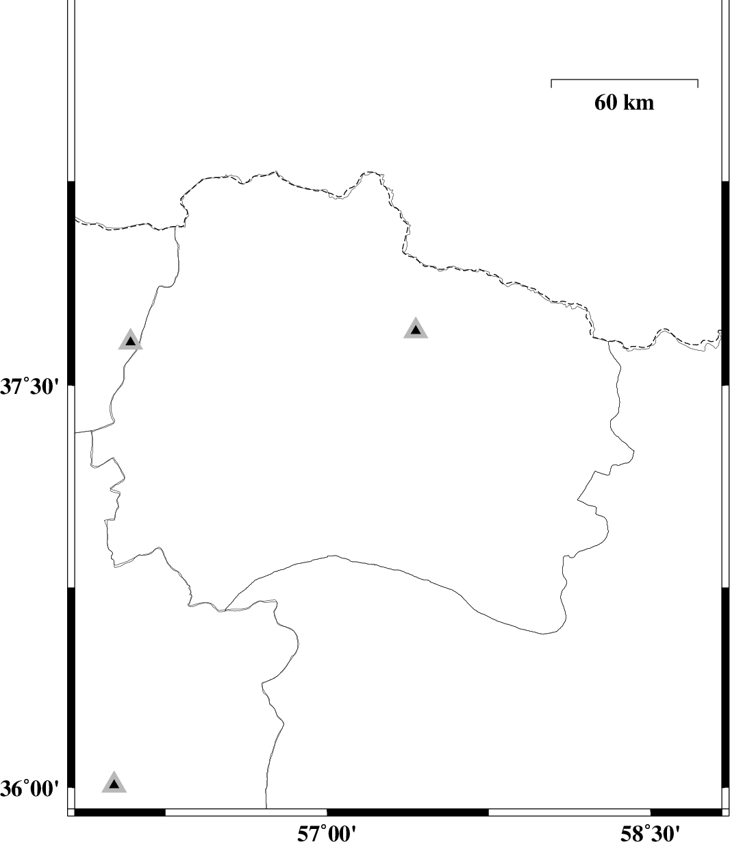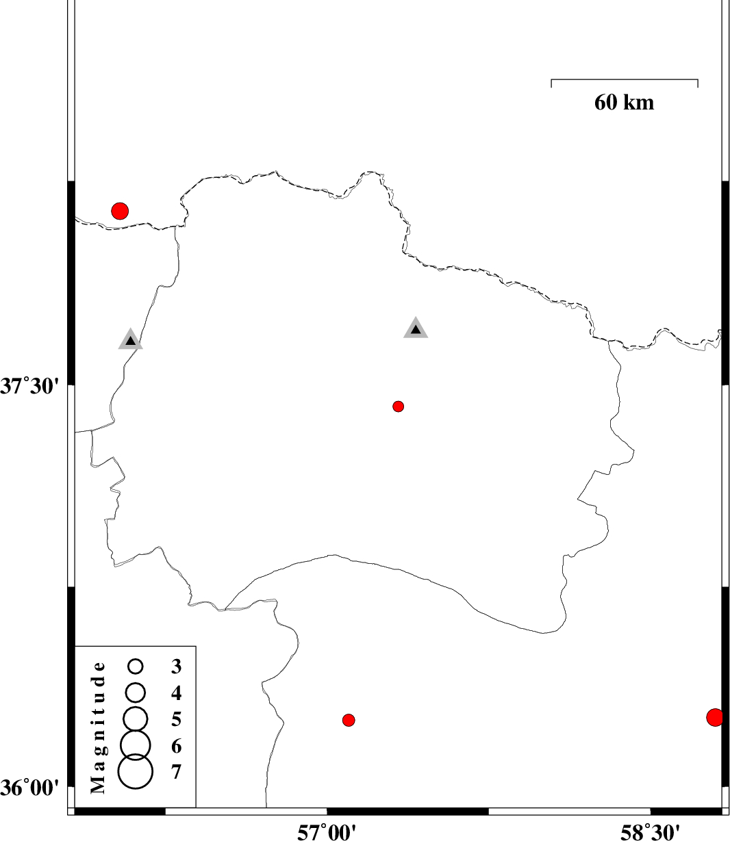 | 2012/02/18 | 07:20:26.8 | 10:50:26.8 | 37.42 | 57.33 | 14 | ML:2.2 | Khorasan(north) Province, 6 km Bojnurd | ||