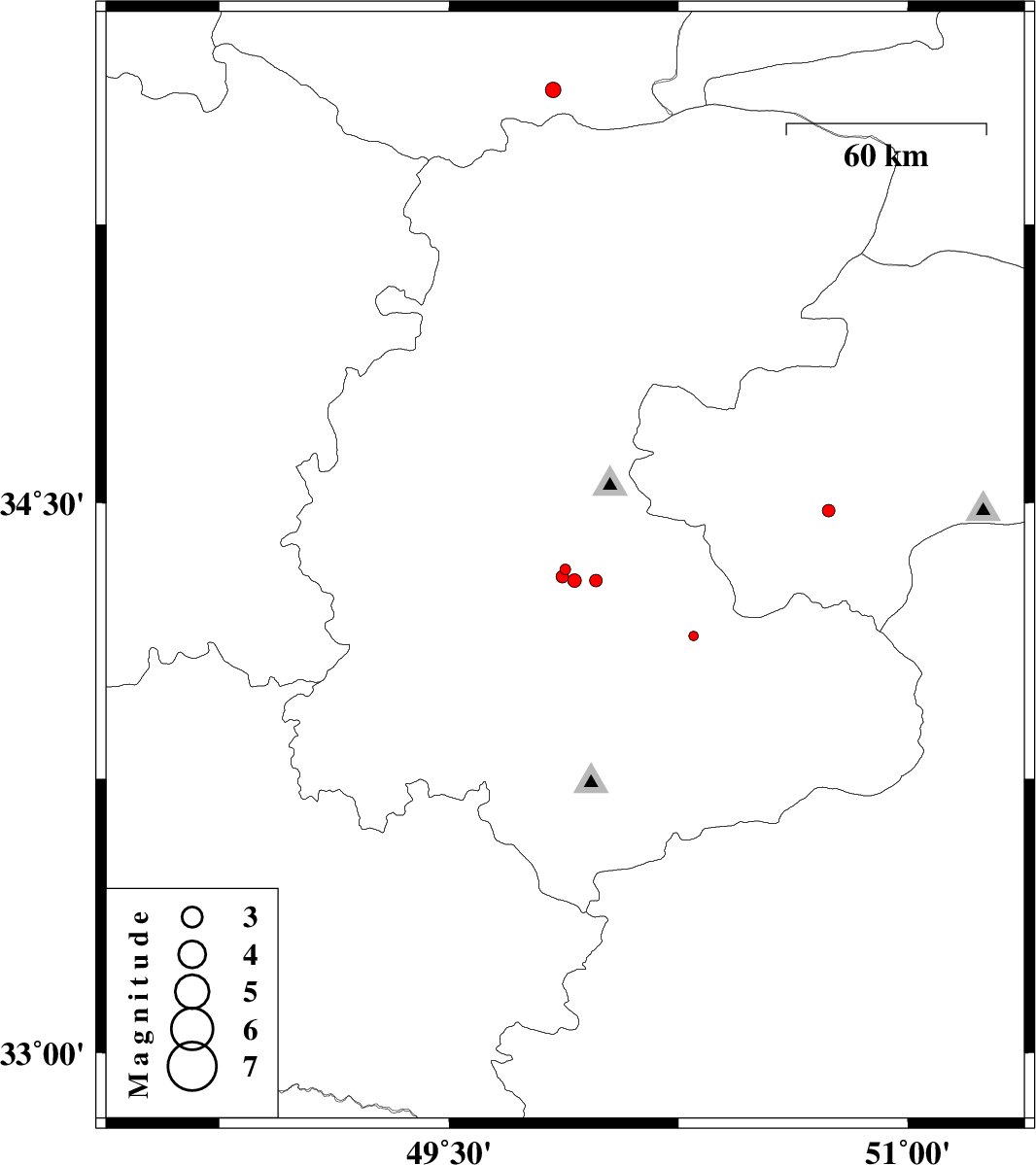 | 2012/02/20 | 17:40:07.4 | 21:10:07.4 | 34.29 | 49.98 | 6 | ML:1.9 | Markazi Province, 27 km South of Ashtiyan | ||