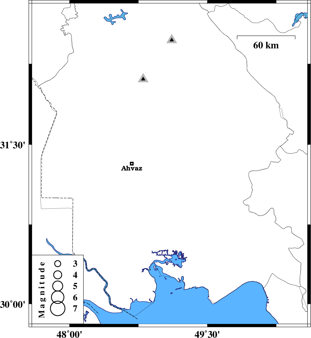 | 2012/02/21 | 19:44:09.0 | 23:14:09.0 | 31.31 | 49.09 | 23 | ML:2.9 | Khoozestan Province, 40 km East of Ahvaz |