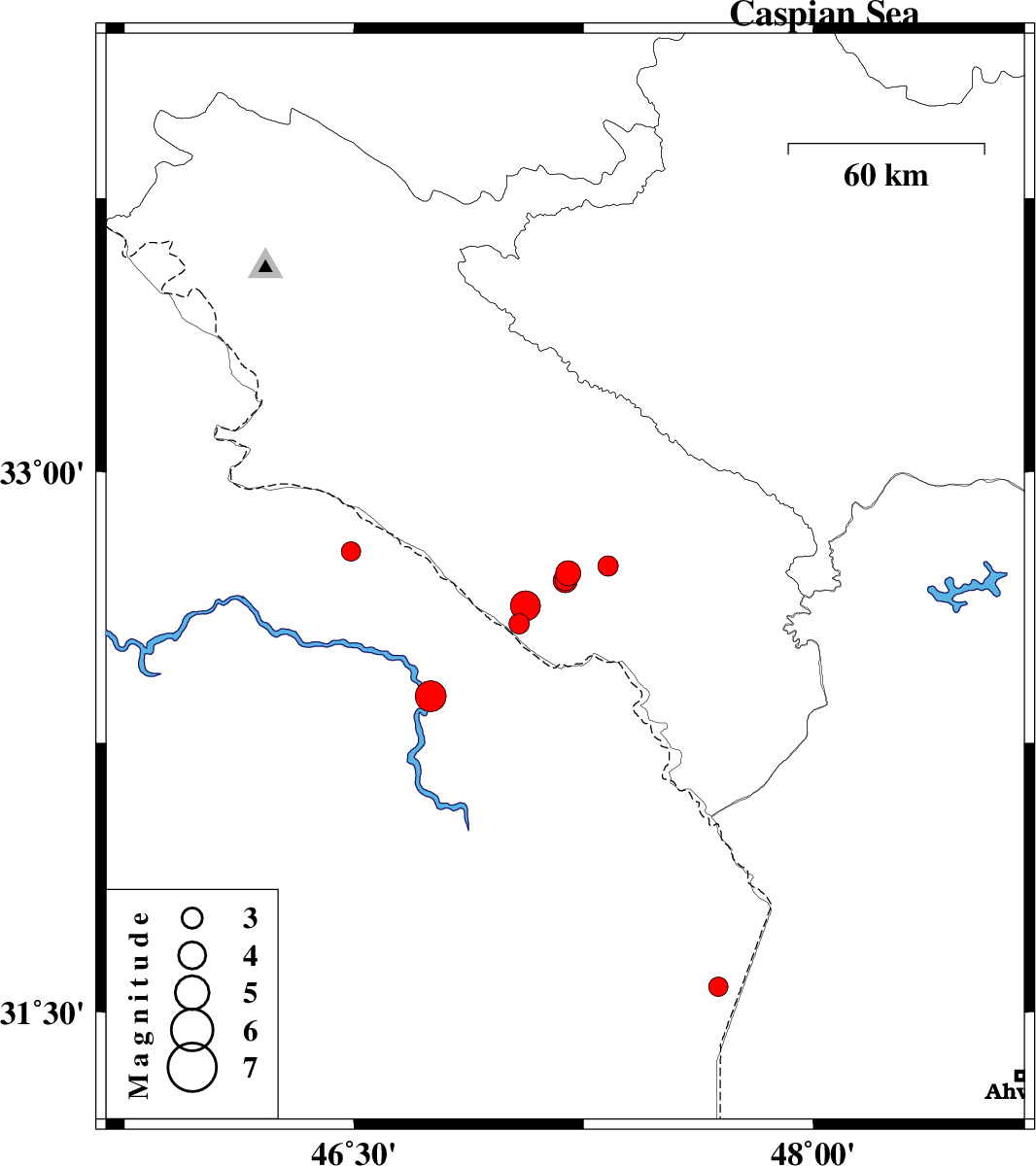 | 2012/02/23 | 15:54:18.0 | 19:24:18.0 | 31.57 | 47.69 | 41 | ML:2.8 | Iraq, 47 km West of Susangerd |