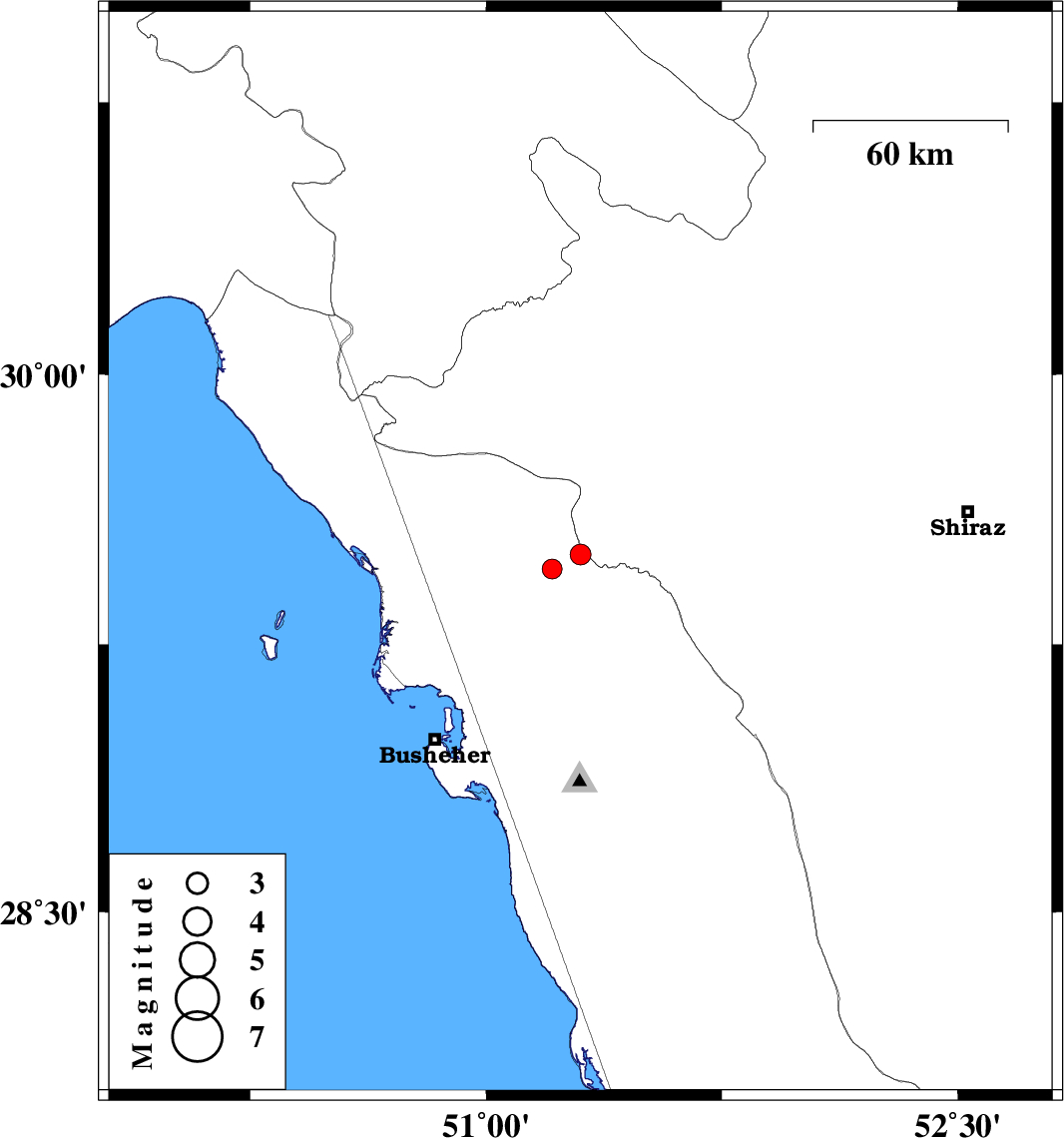 2012/03/06 17:59:08.8 21:29:08.8 29.551.331 ML:2.9 Bushehr Province, 28 km North of Borazjan