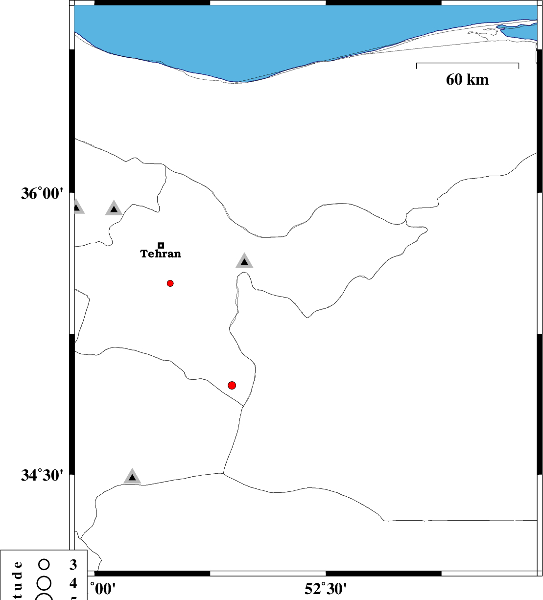 | 2012/02/29 | 07:26:47.9 | 10:56:47.9 | 36.02 | 51.97 | 1 | ML:1.8 | Mazandaran Province, 35 km North-West of Damavand |