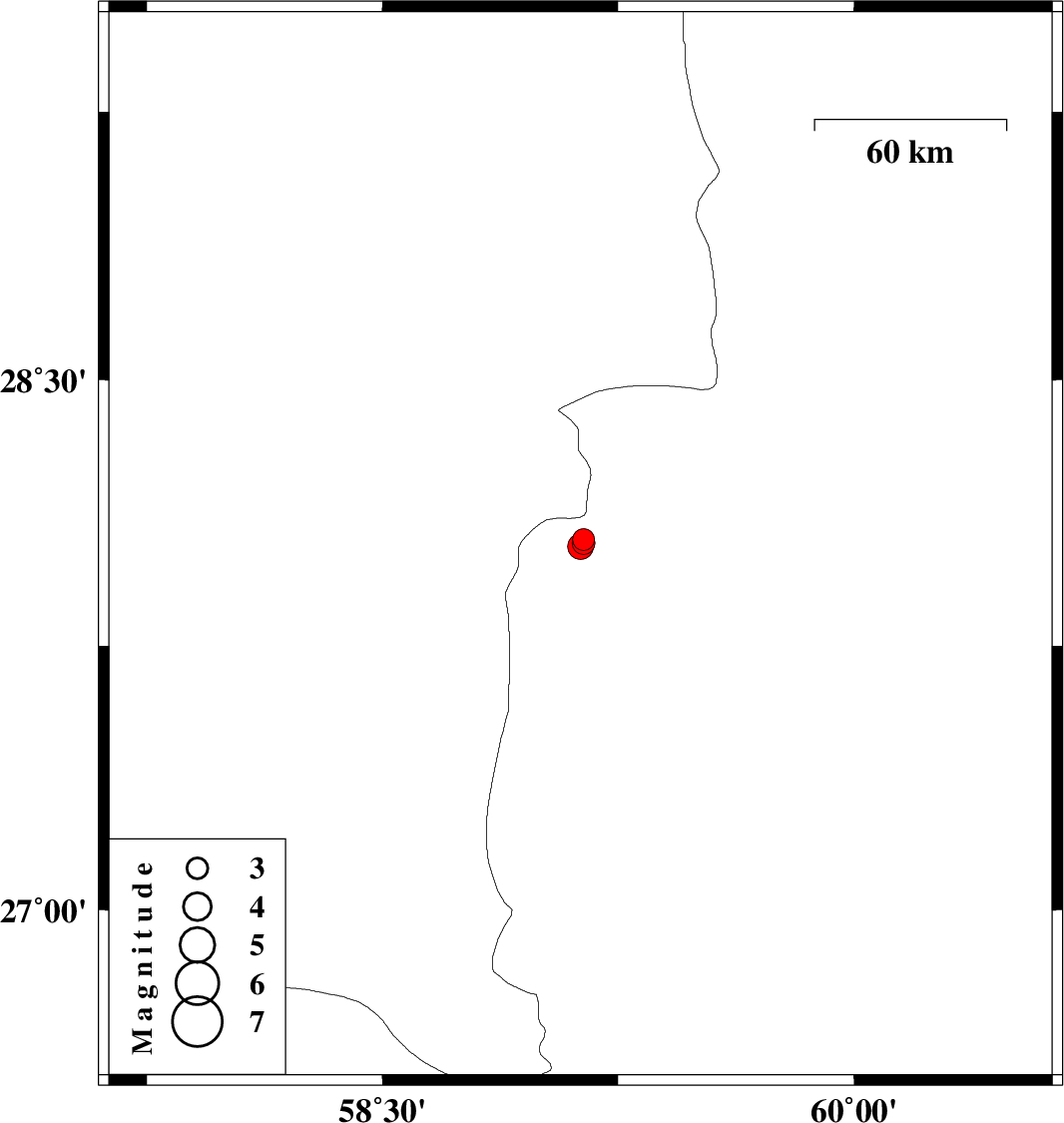 | 2012/03/10 | 15:15:44.1 | 18:45:44.1 | 28.04 | 59.14 | 15 | ML:3.2 | Sistan va Baloochestan Province, 142 km East of Kahnuj | ||