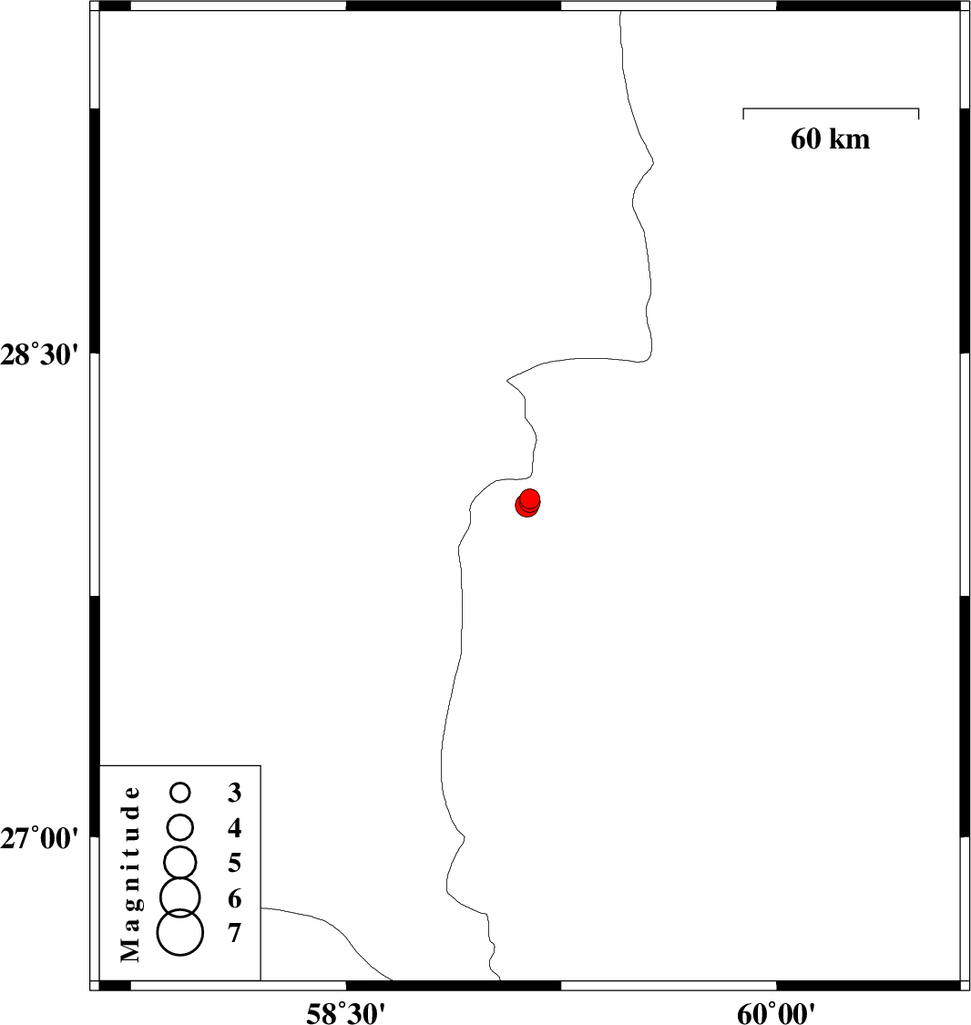| 2012/03/10 | 15:15:44.1 | 18:45:44.1 | 28.04 | 59.14 | 15 | ML:3.2 | Sistan va Baloochestan Province, 142 km East of Kahnuj | ||