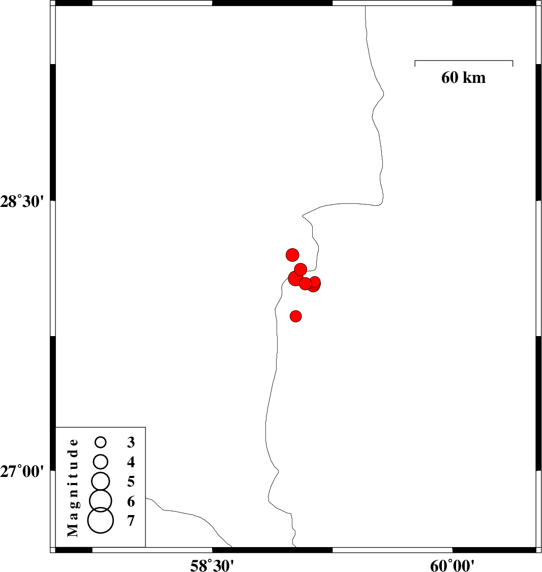 | 2012/03/11 | 05:00:05.5 | 08:30:05.5 | 28.07 | 59.02 | 15 | ML:4.2 | Sistan va Baloochestan Province, 131 km North-East of Kahnuj | ||