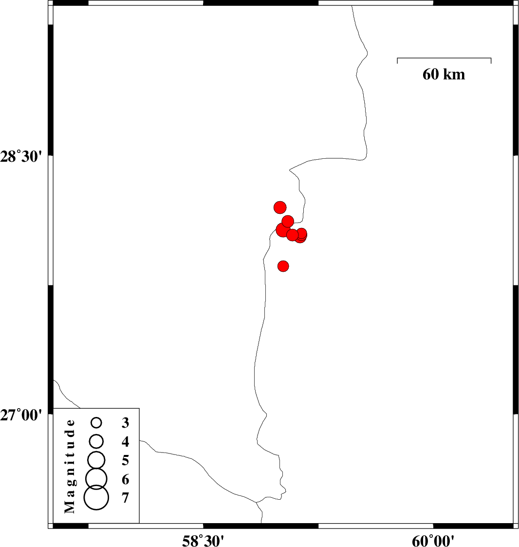 | 2012/03/11 | 05:00:05.5 | 08:30:05.5 | 28.07 | 59.02 | 15 | ML:4.2 | Sistan va Baloochestan Province, 131 km North-East of Kahnuj | ||