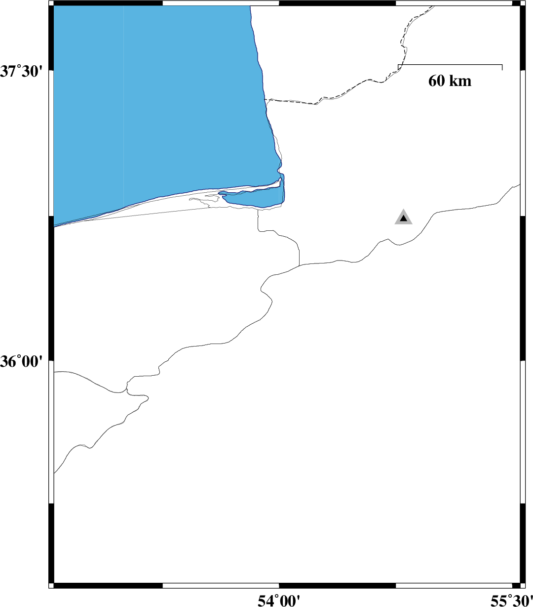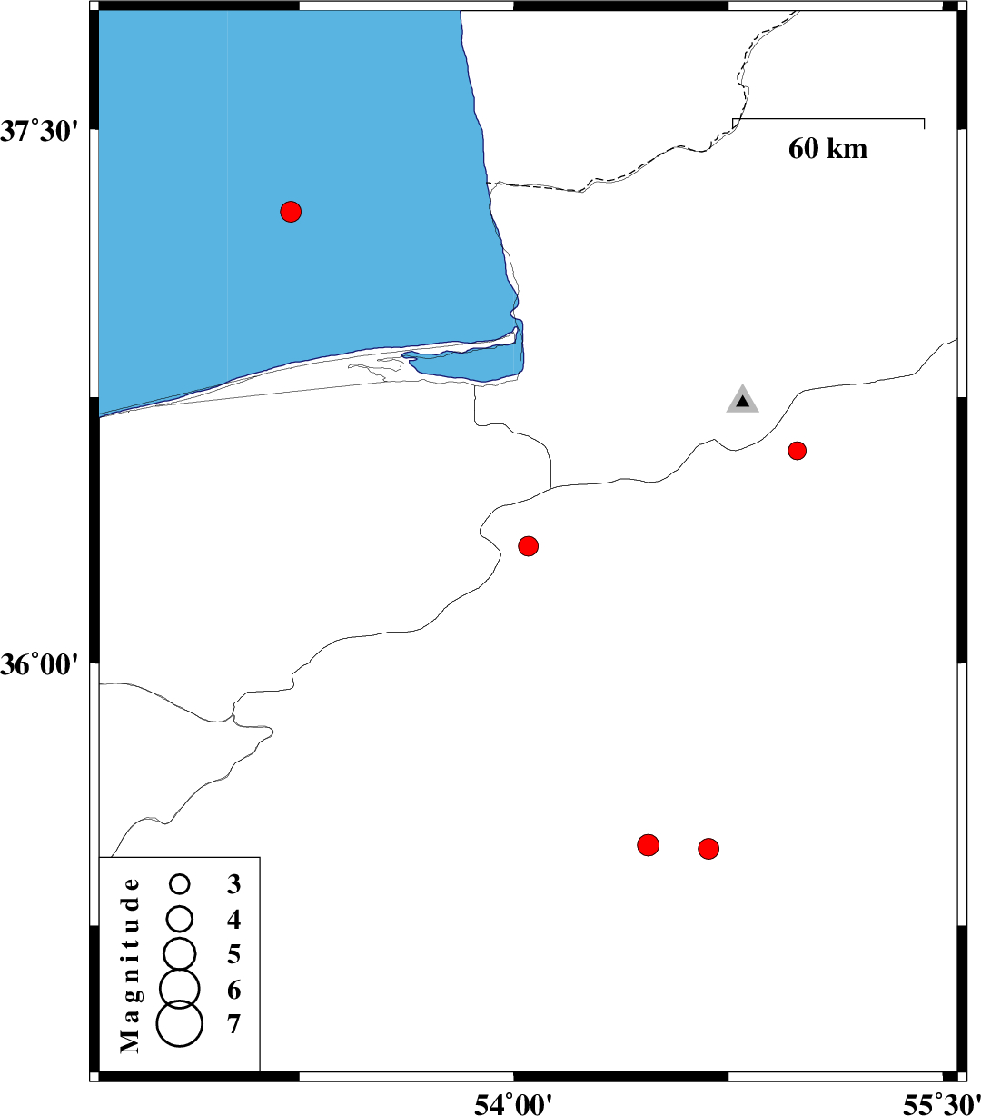 | 2012/03/13 | 04:45:37.8 | 08:15:37.8 | 37.27 | 53.22 | 14 | ML:3.3 | Caspian Sea, 70 km North of Neka | ||
