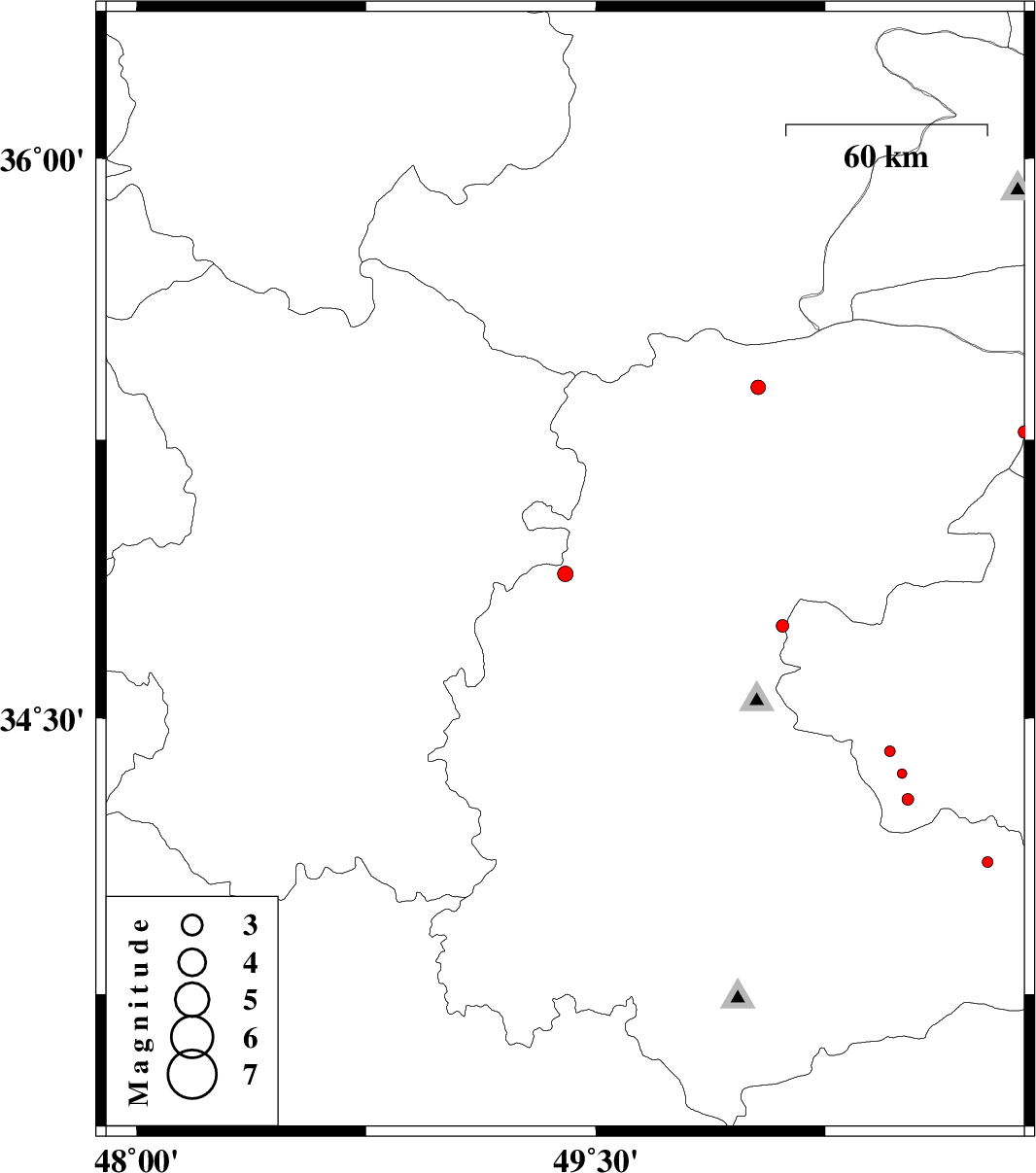| 2012/03/08 | 04:05:38.2 | 07:35:38.2 | 34.75 | 50.11 | 18 | ML:1.9 | Markazi Province, 10 km Tafresh |