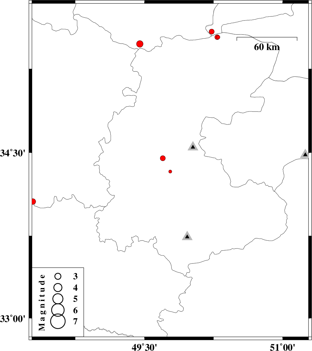 | 2012/03/25 | 05:40:40.5 | 10:10:40.5 | 34.33 | 49.78 | 14 | ML:1.6 | Markazi Province, 28 km North of Arak | ||