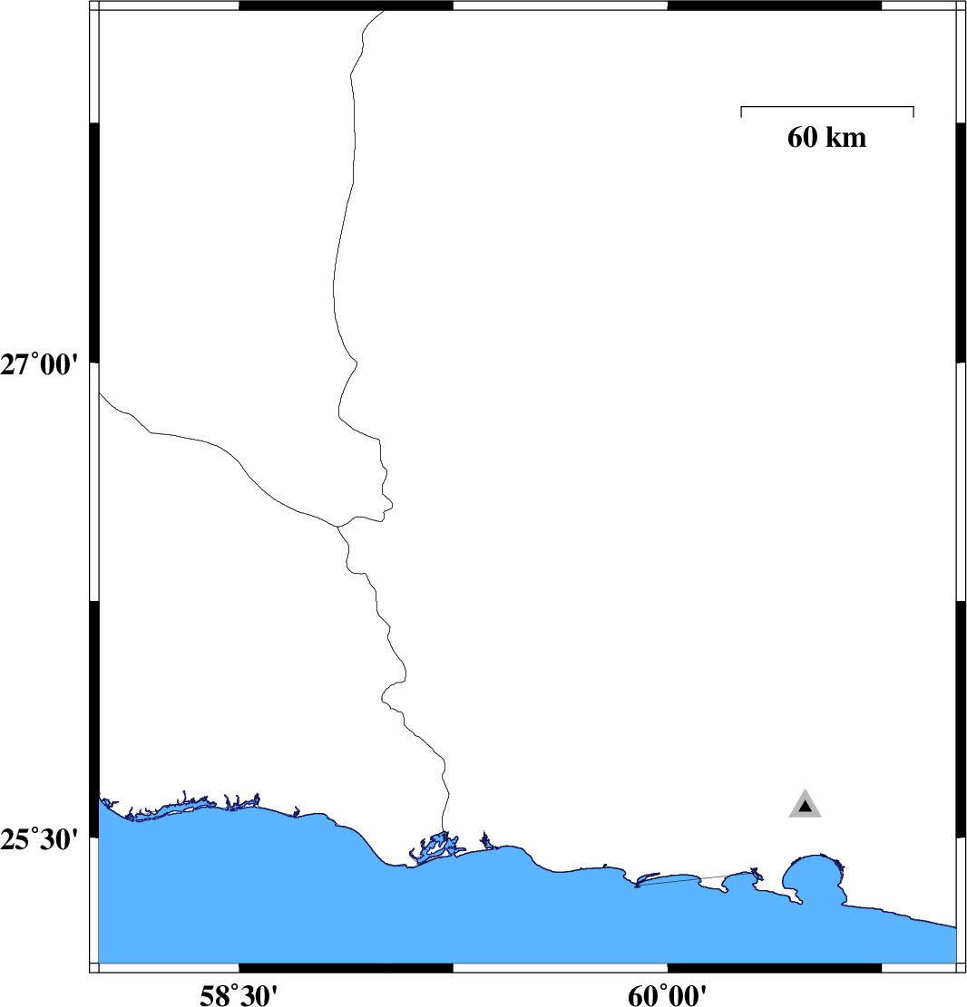 | 2012/03/19 | 07:06:09.0 | 10:36:09.0 | 27.87 | 58.02 | 14 | ML:3.2 | Kerman Province, 34 km East of Kahnuj | ||