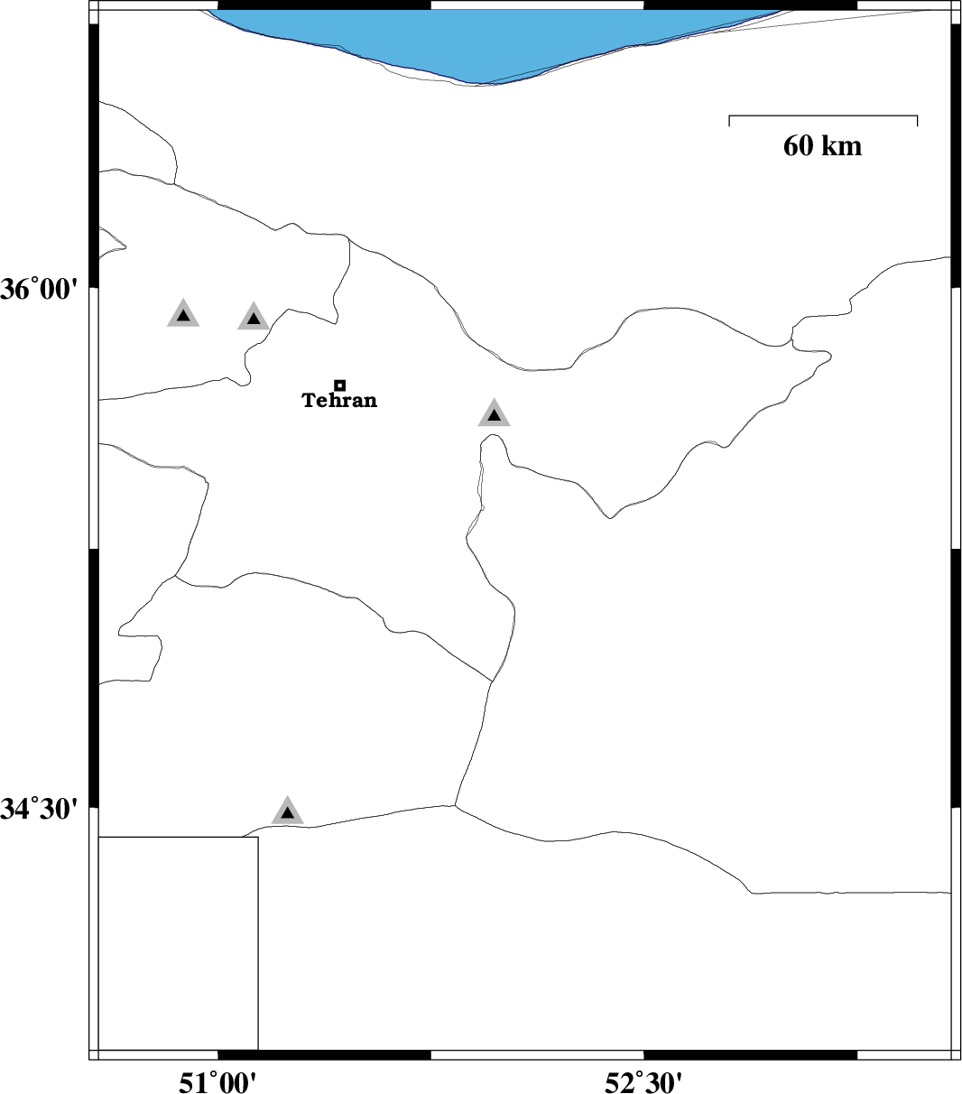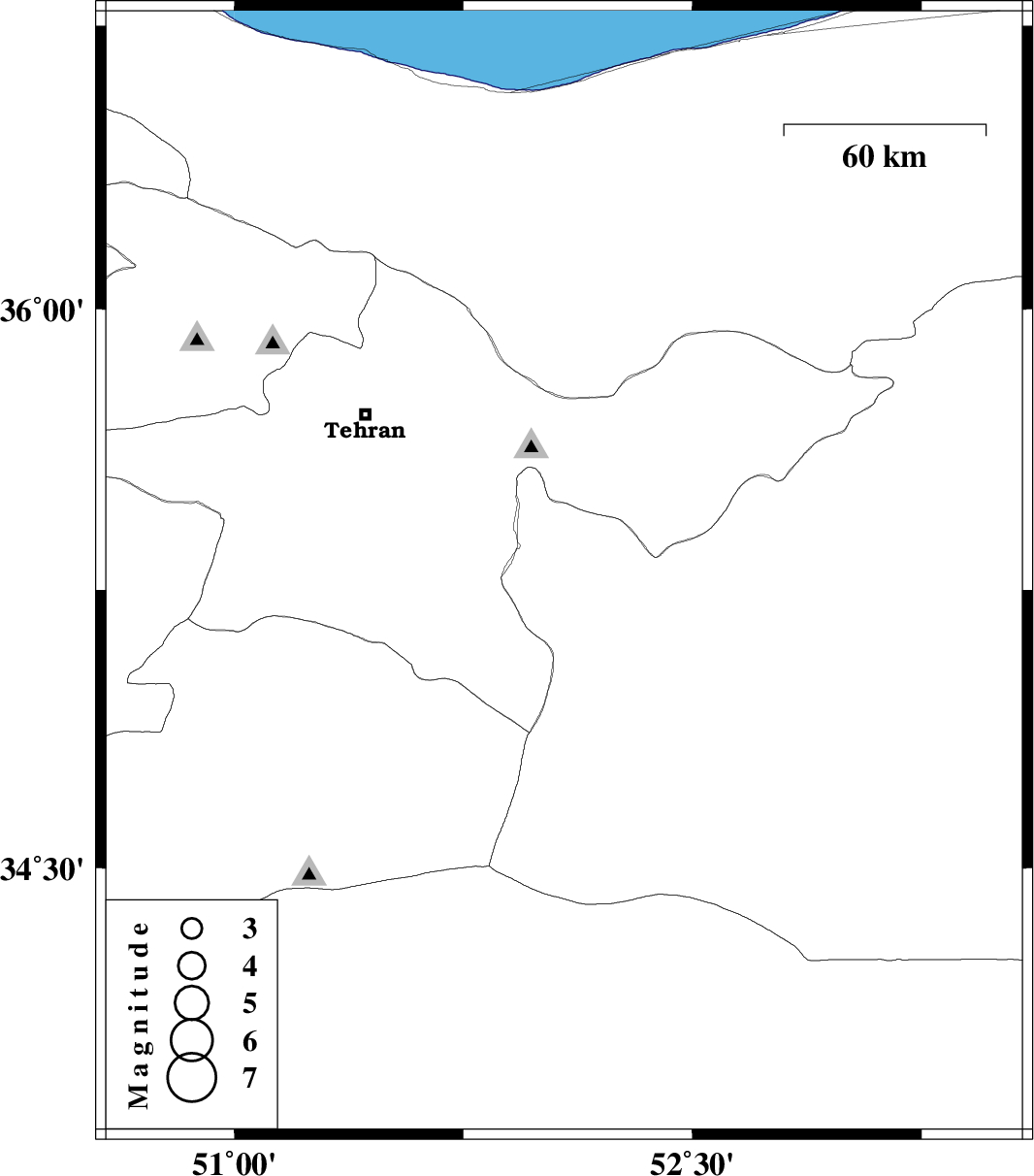 | 2012/03/28 | 05:35:19.6 | 10:05:19.6 | 35.29 | 52.08 | 18 | ML:2.5 | Semnan Province, 24 km West of Garmsar |