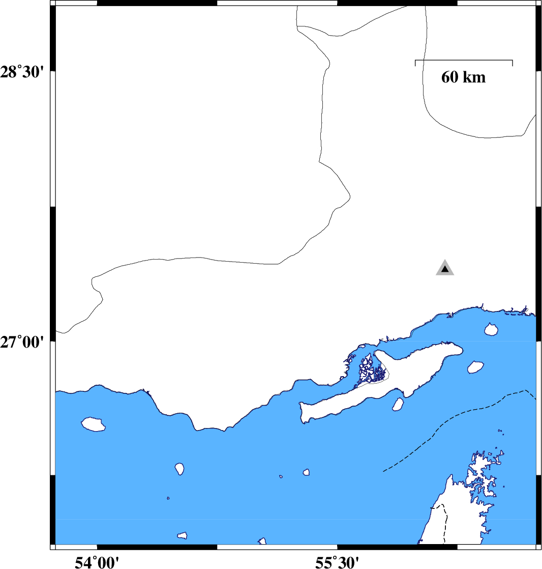 | 2012/03/25 | 05:00:07.7 | 09:30:07.7 | 27.21 | 56.04 | 14 | ML:2.8 | Hormozgan Province, 25 km West of Bandar-e abbas | ||