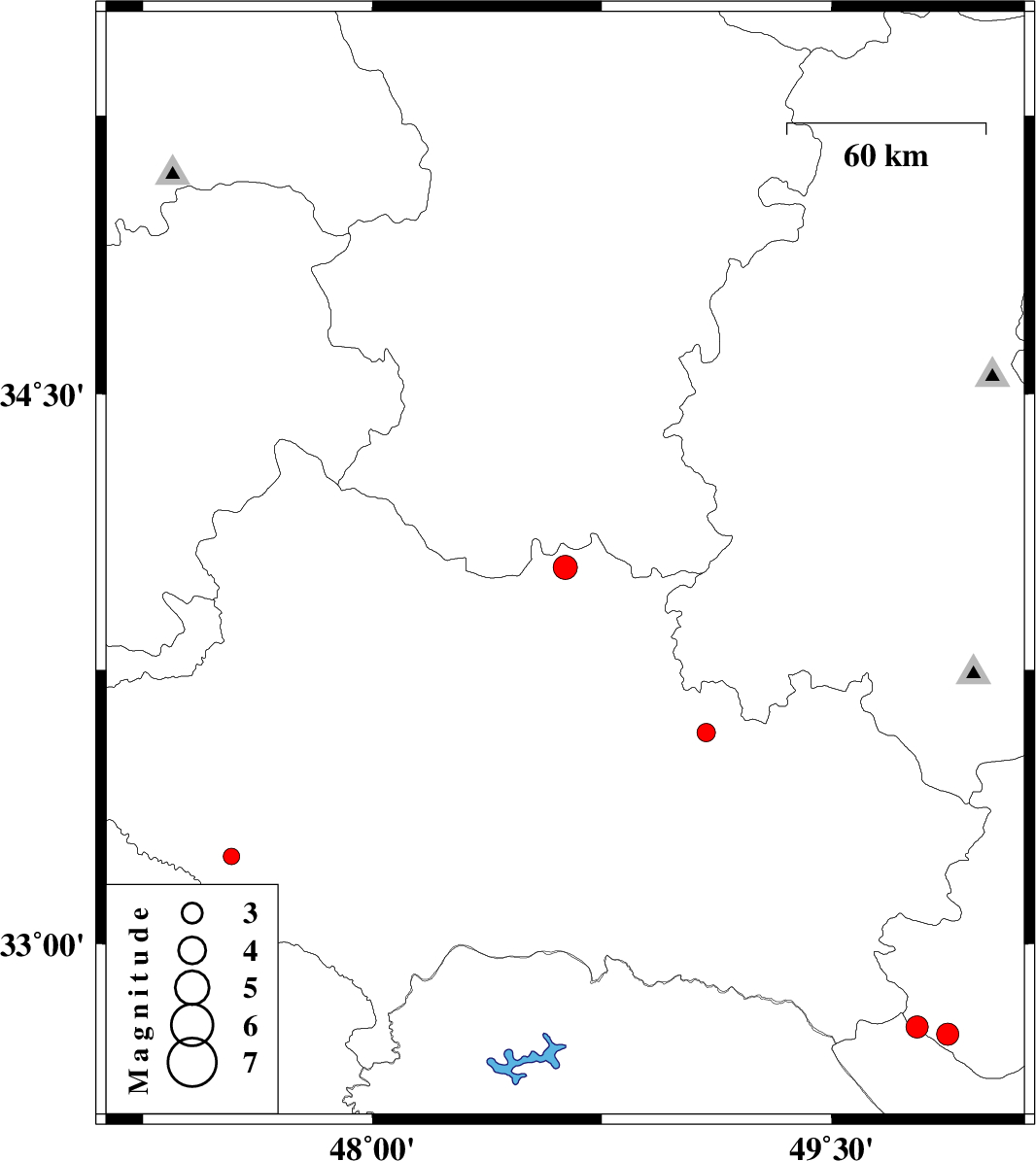 | 2012/03/31 | 05:36:55.2 | 10:06:55.2 | 32.77 | 49.78 | 14 | ML:3.2 | Esfahan Province, 37 km South-West of Fereydunshahr | ||