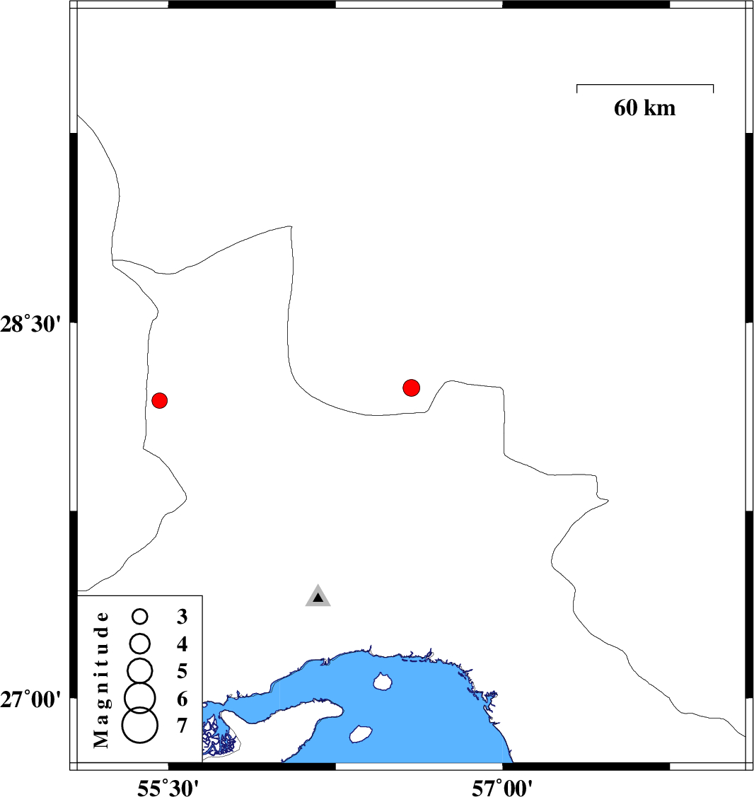 | 2012/04/01 | 09:29:57.9 | 13:59:57.9 | 28.19 | 55.46 | 38 | ML:3.1 | Hormozgan Province, 45 km South-West of Hajiabad |