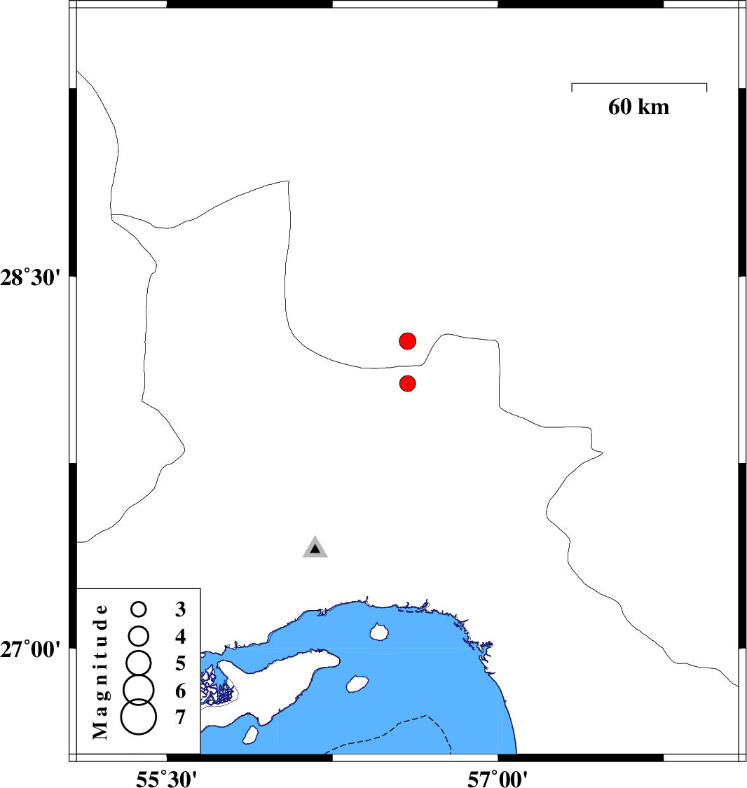 2012/04/09 | 00:30:19.4 | 05:00:19.4 | 28.07 | 56.59 | 10 | ML:3.3 | Hormozgan Province, 73 km South-East of Hajiabad | ||