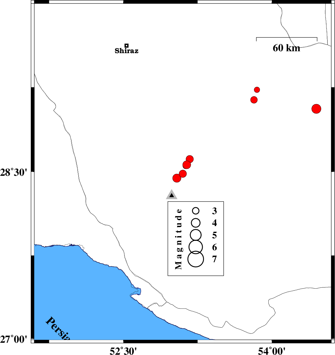 Bushehr Province, 37 km West of Bandar-e kangan | |