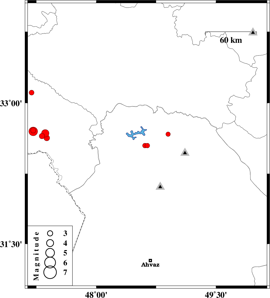 | 2012/04/18 | 09:04:01.3 | 13:34:01.3 | 32.55 | 48.61 | 14 | ML:2.7 | Khoozestan Province, 26 km East of Andimeshk | ||