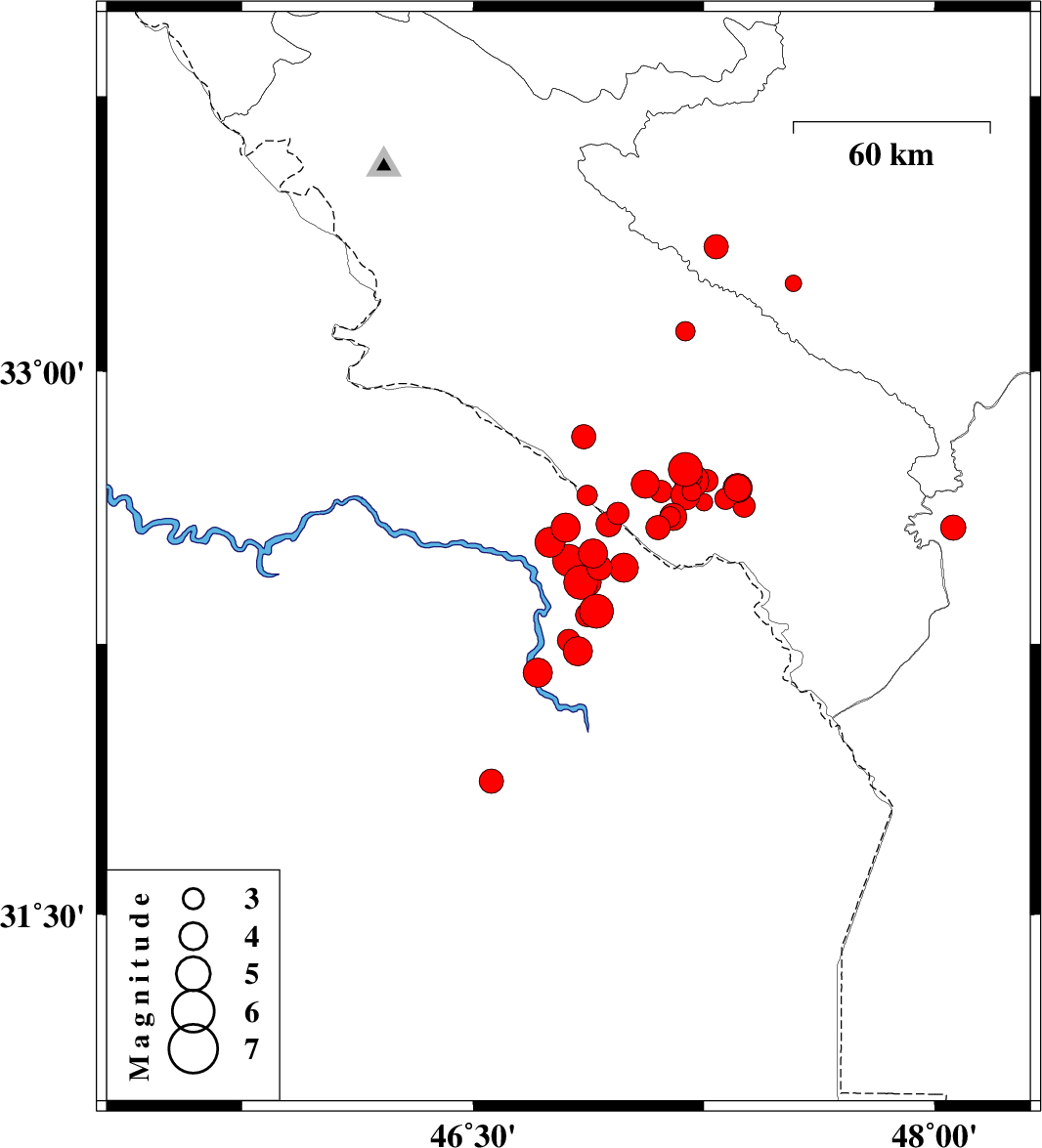 2012/04/20 15:57:58.5 20:27:58.5 32.647.1414 ML:3 Ilam Province, 15 km West of Dehloran