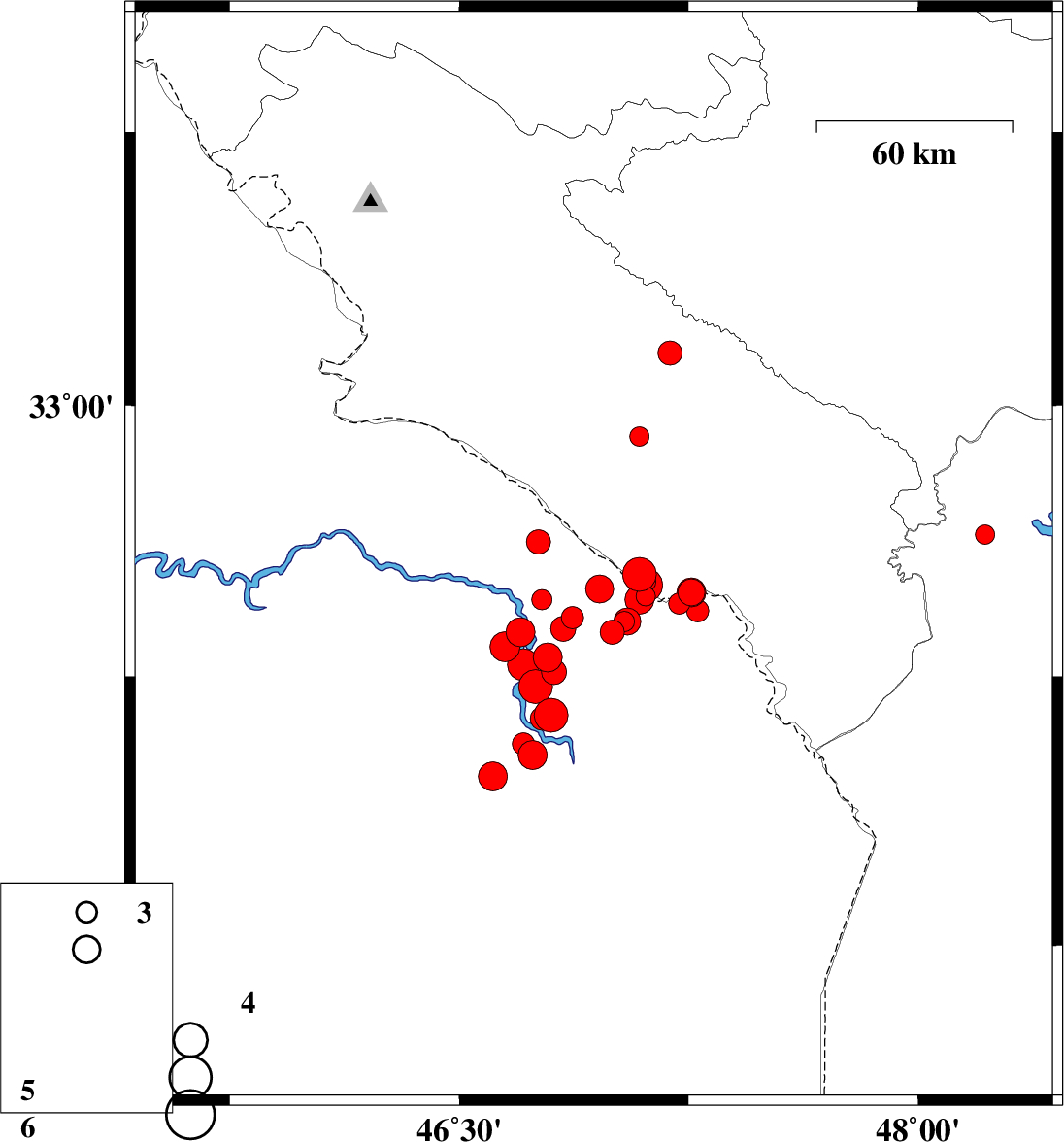 2012/04/20 05:22:33.6 09:52:33.6 32.5846.9417 ML:3.7 Iraq, 32 km South-West of Dehloran